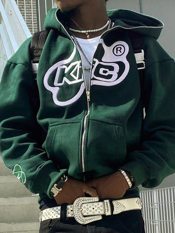 Multi Color Vintage Men's Print Zip Up Oversized Hoodie