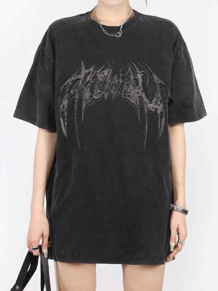 Punk Oversized Faux Suede Short Sleeve Top with Skeleton Graphic