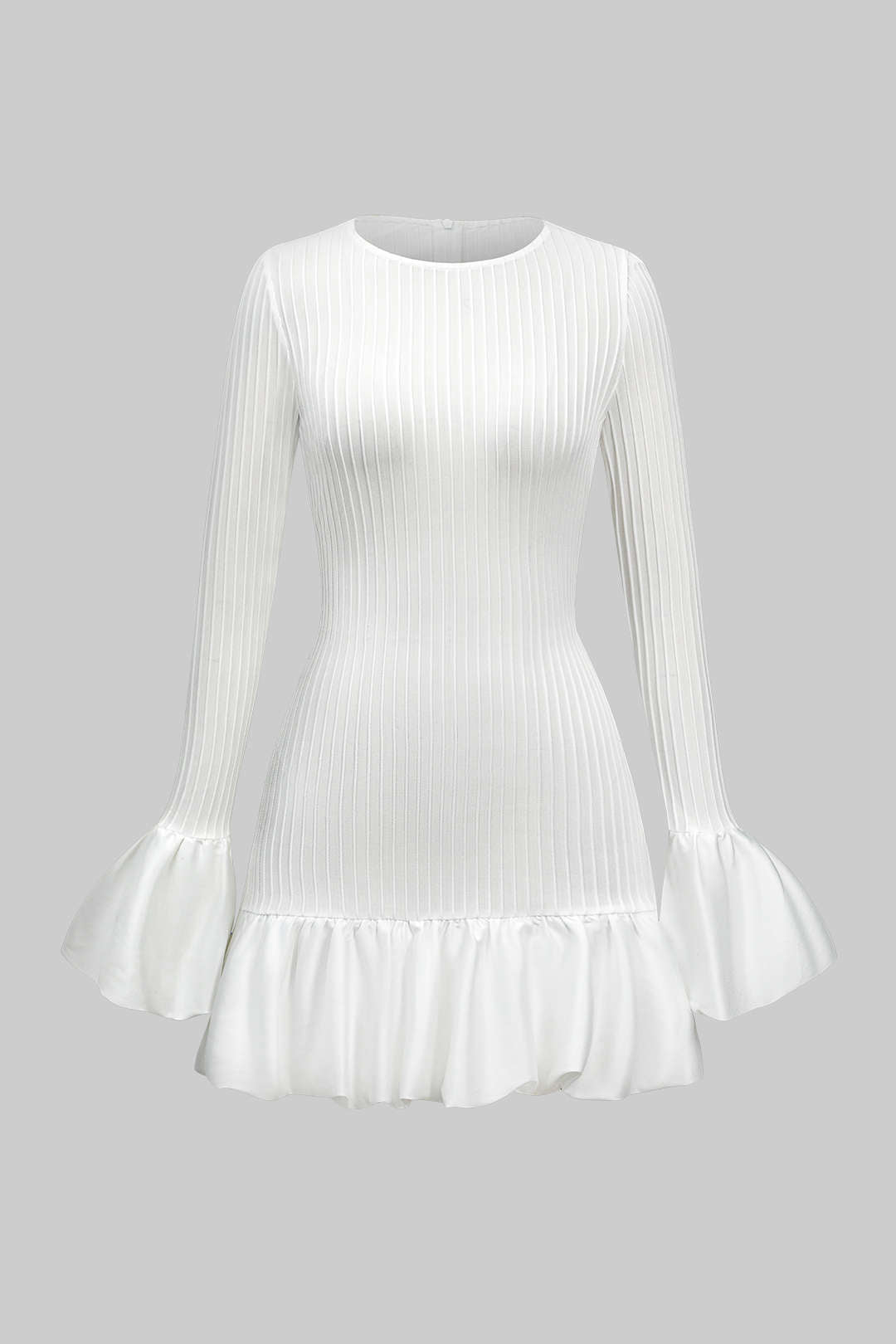 Vintage Solid Color Puff Bell Sleeve Mini Dress