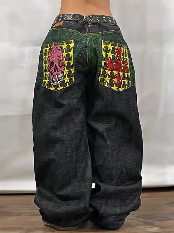 Black Y2k American Retro Hiphop Boyfriend Jeans