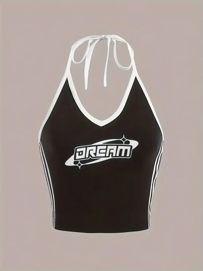 Contrast Y2K Dream Print Halter Neck Crop Cami Top