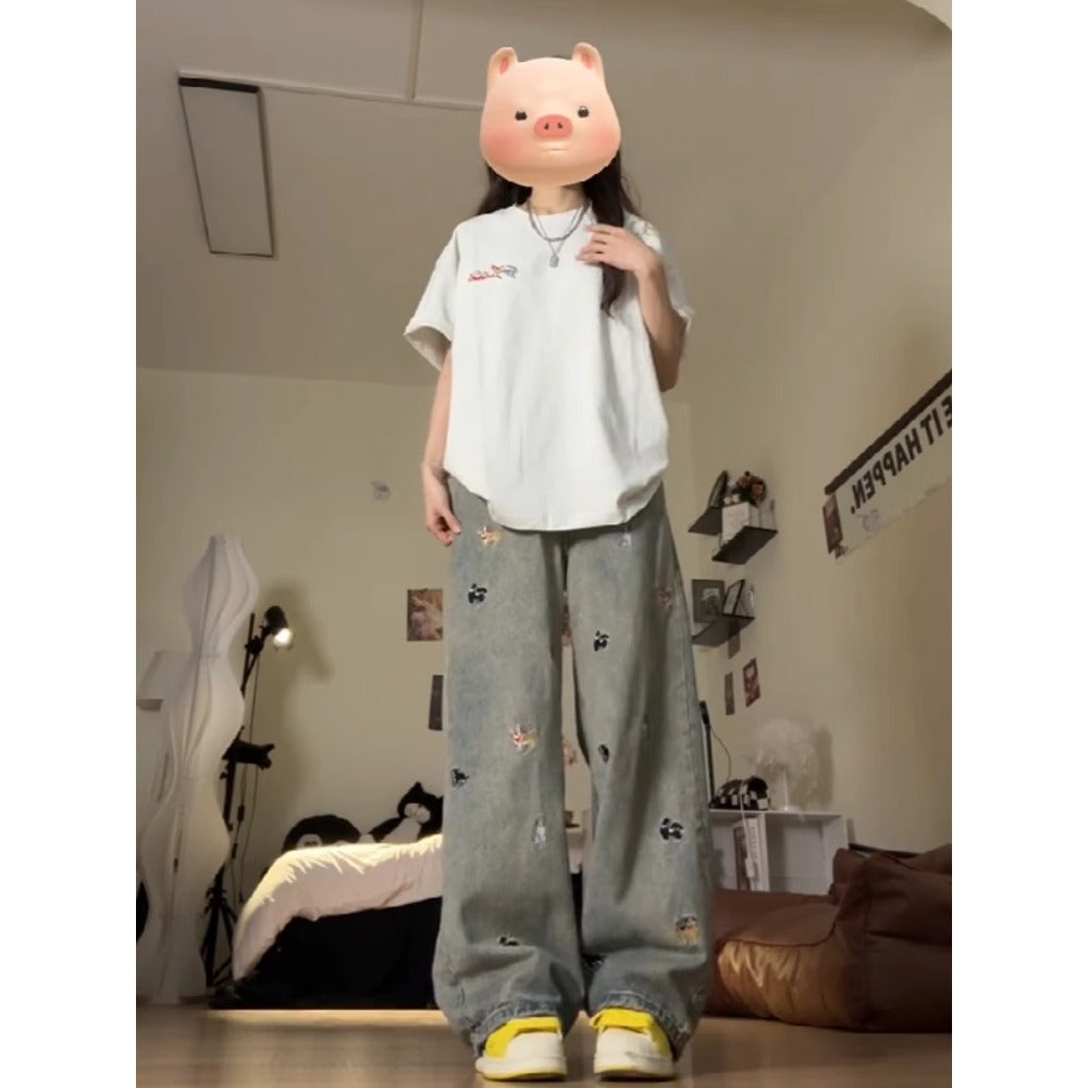 Style: Casual/Street/Y2K/Vintage/Preppy/Punk/Hip Pop/SweetFabric Content: Cotton BlendFit Type: Boyfriend fit Vintage-Inspired Pocket Embroidery: Detailed embroidery on...