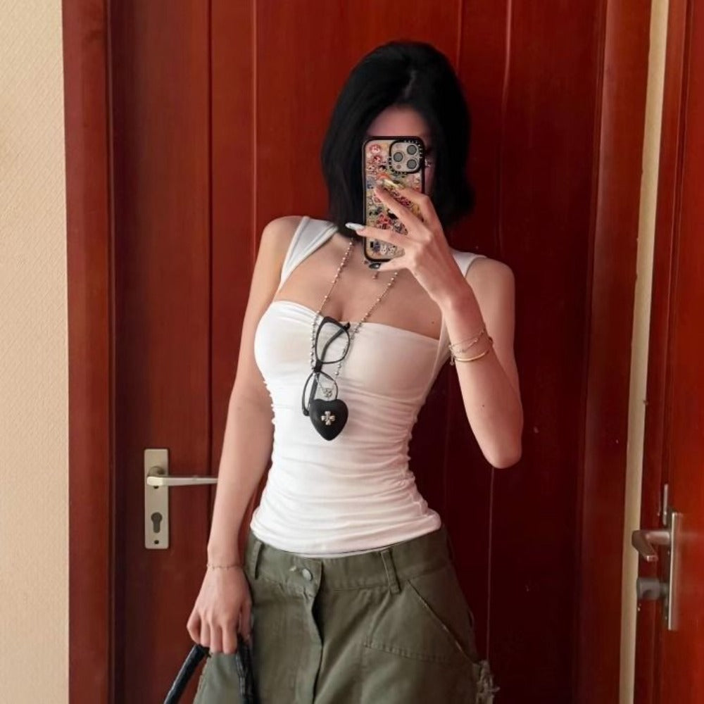 Upgrade your everyday basics with this white sleeveless fitted tank top designed for a clean...