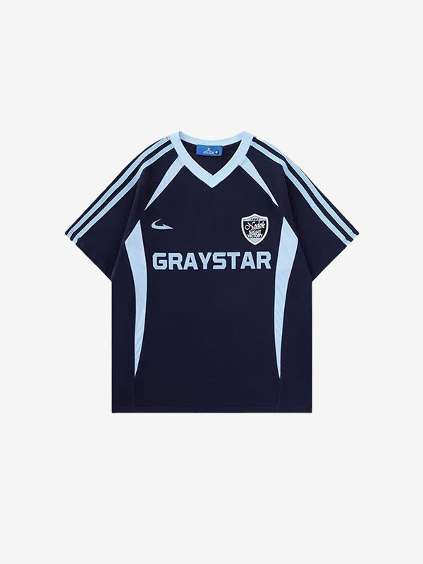 Navy Blue 90s Stripe V Neck Oversized Short Sleeve Tee