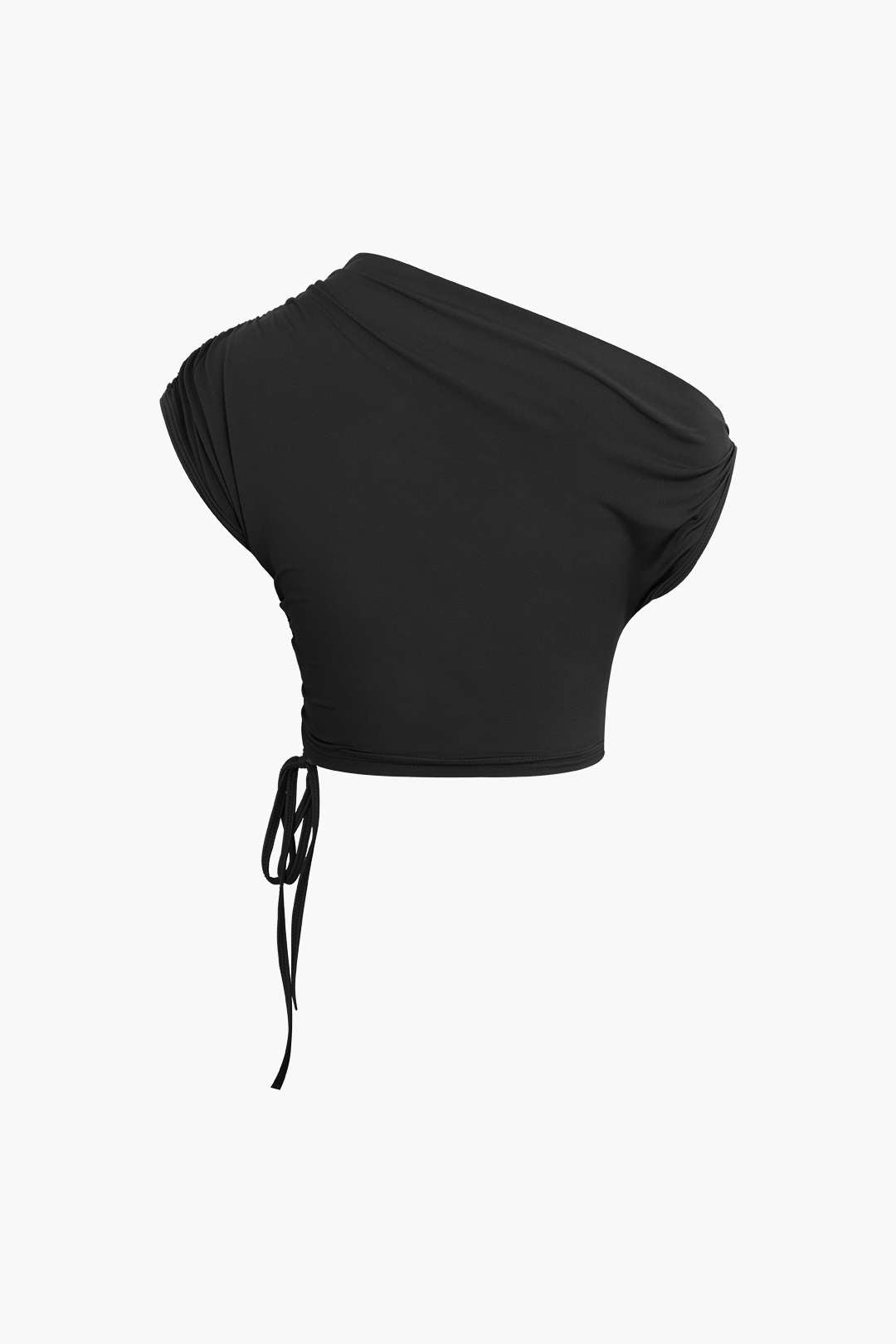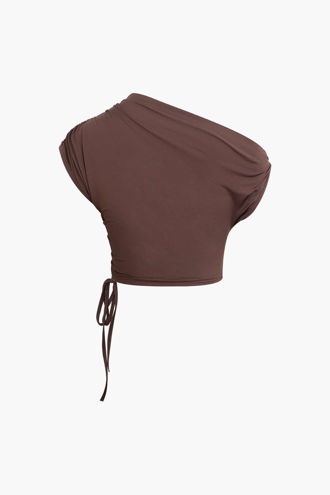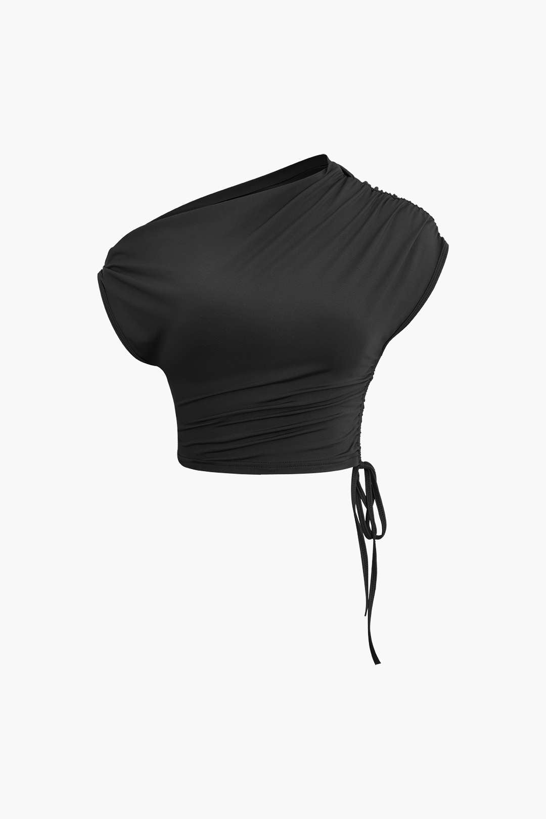 Asymmetrical Drawstring Short Sleeve Crop Top & Maxi Skirt Set
