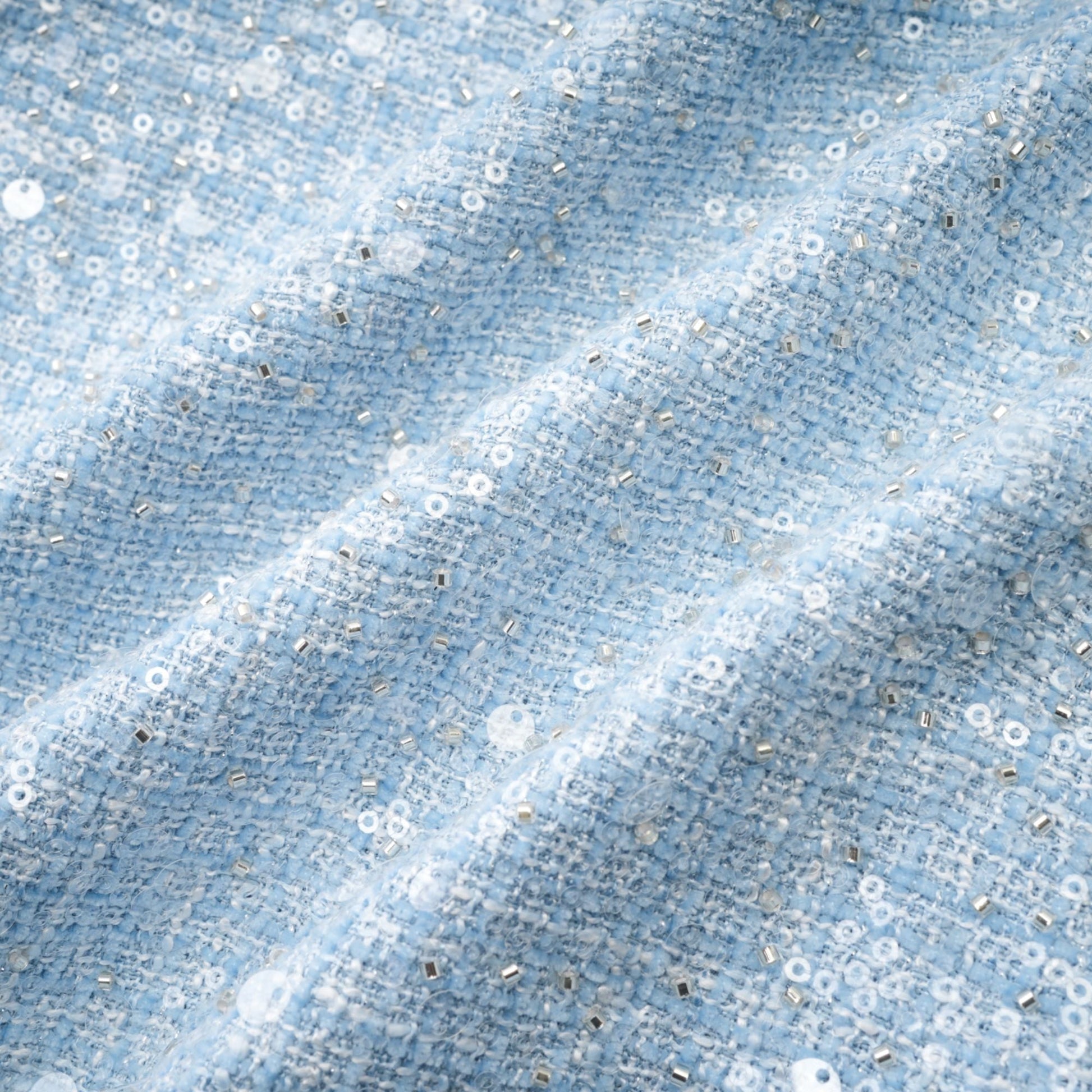 Baby Blue Tweed Mini Dress with Cut-Outs for Women - Nadia