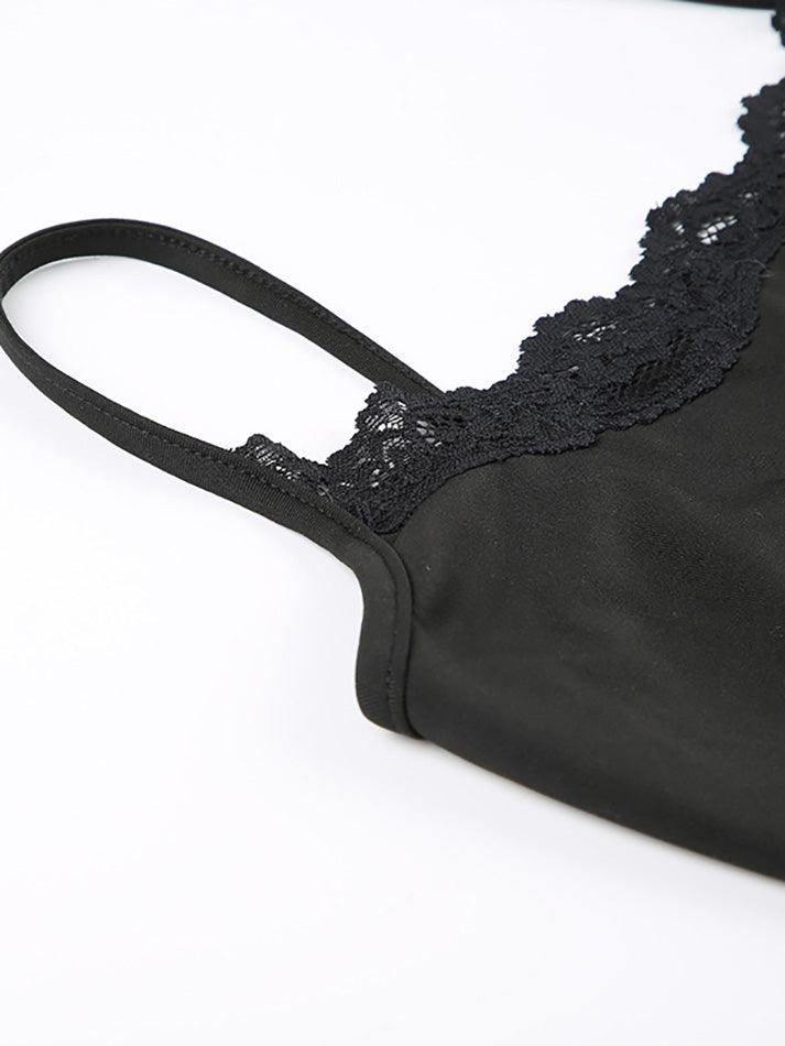 Black Spaghetti Strap Lace Trim Mini Bodycon Dress