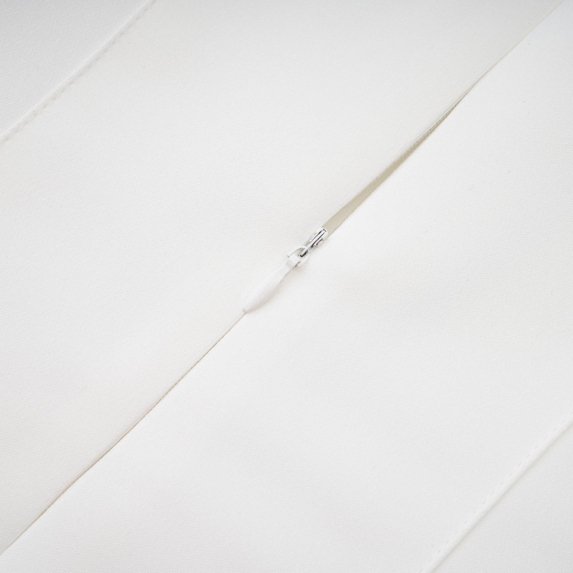 Off-the-shoulder neckline and sleeveless cut create a structured, modern silhouette
