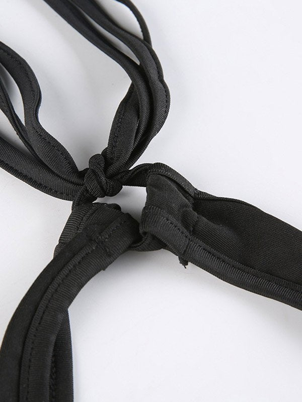 Black Y2K Irregular Hem Halter Crop Tank Top