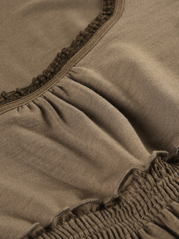 Brown Vintage Square Collar Long Sleeve Tee – Elevate your wardrobe with this retro-inspired brown tee featuring a distinctive square collar and contrast stitching details. The timeless design blends vintage charm with modern comfort, perfect for creating polished casual looks with a nostalgic twist.