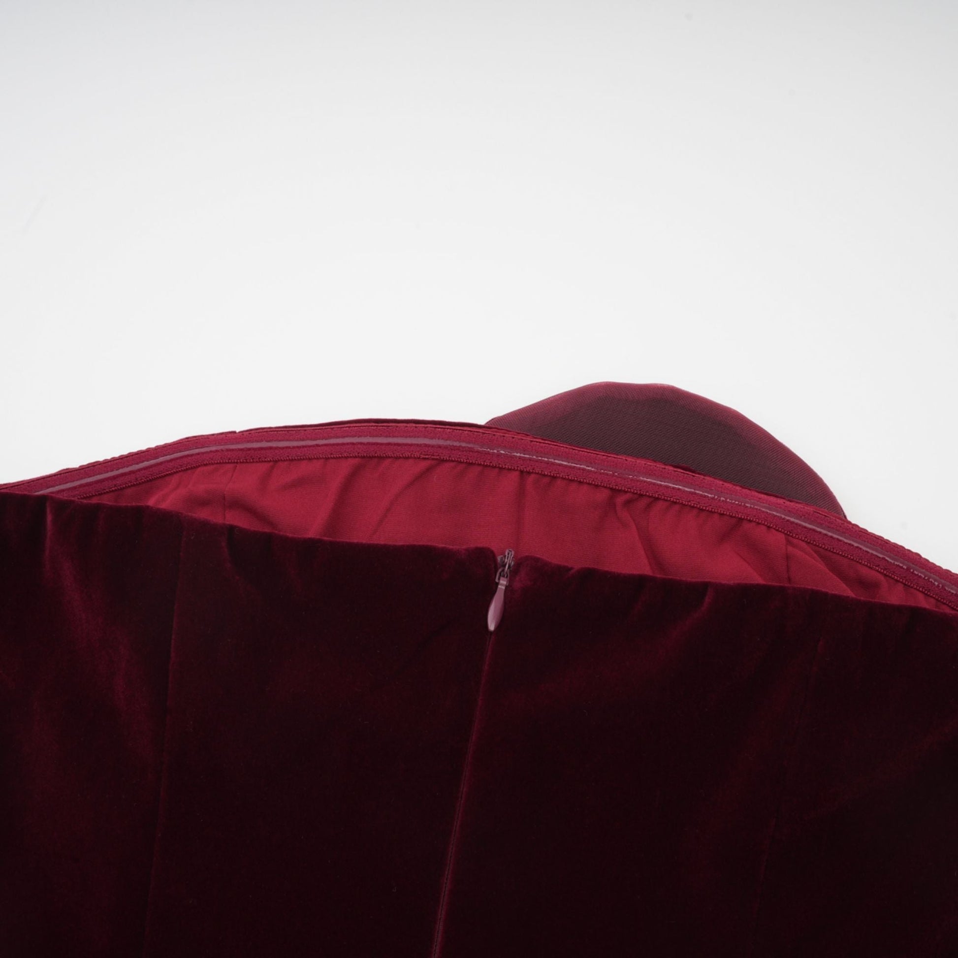 Burgundy Strapless Mini Dress with Velvet Flower Detailing for Women - Angelica