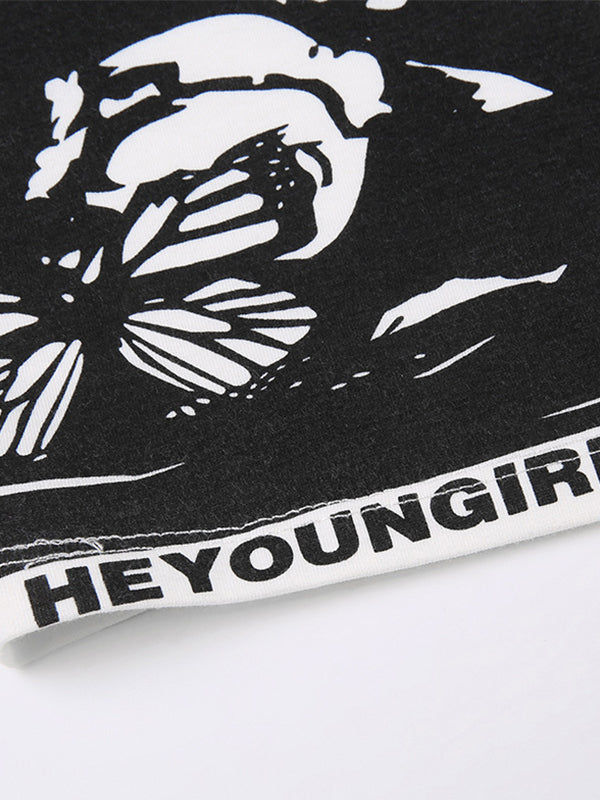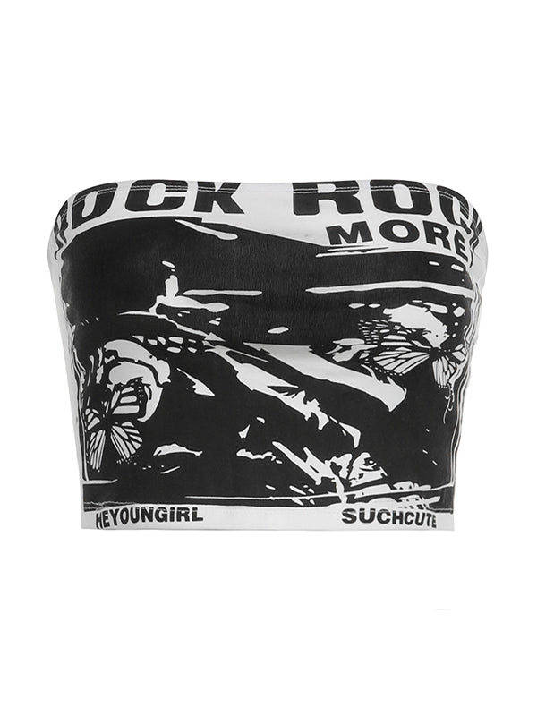 Contrast Color Hip Hop Butterfly Print Bandeau Top