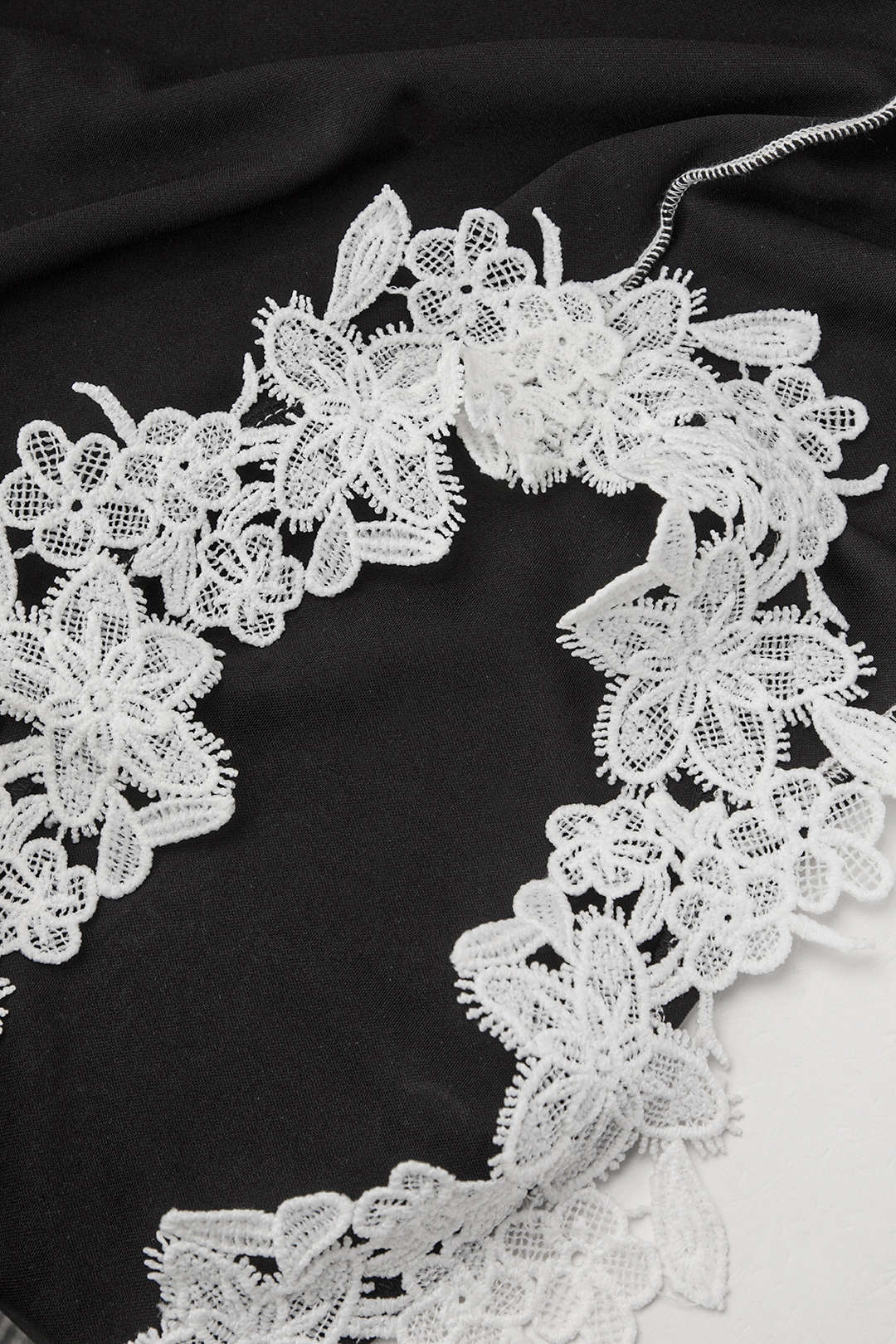 Creme Asymmetric Lace Panel Slim Midi Dress