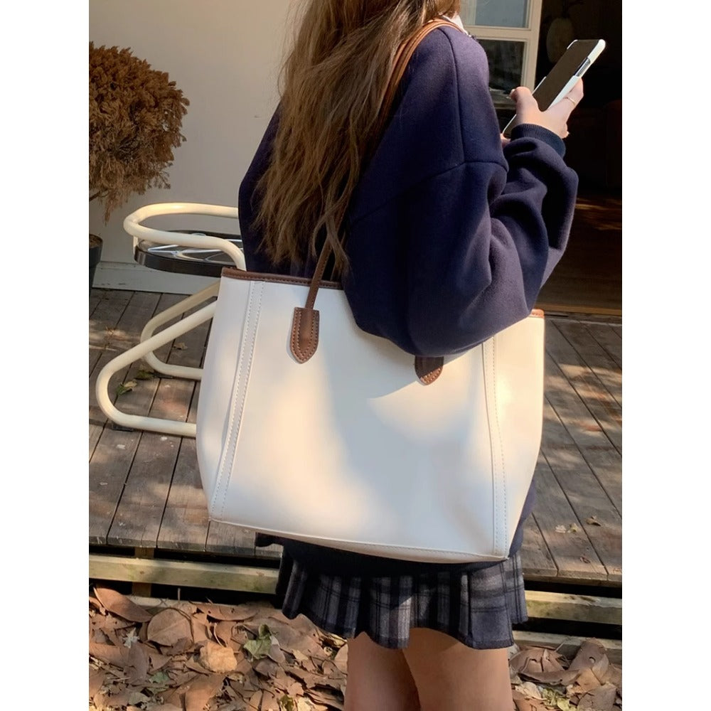 This brown faux leather shoulder tote bag for women offers a stylish and practical way to carry your everyday essentials. With its spacious interior and sturdy design, it combines versatility and durability to suit a variety of daily needs.