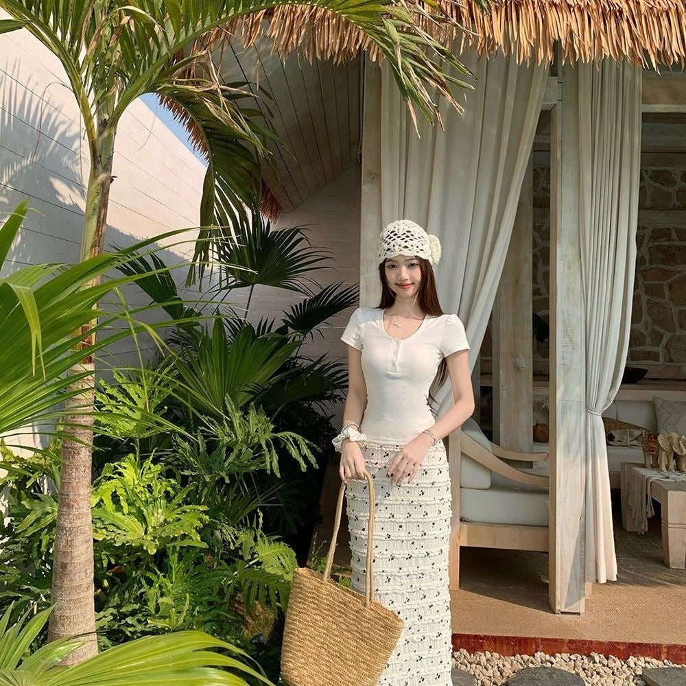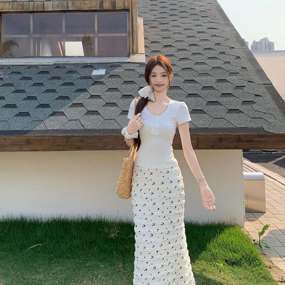 This white floral lace maxi skirt for women brings a delicate and timeless look with its intricate detailing. Designed with a slim silhouette and lightweight feel, it’s a versatile piece that can easily be styled for everyday wear.