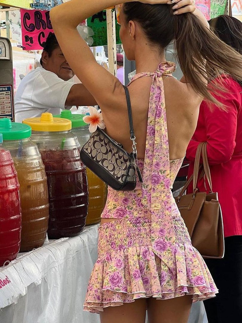 Vibrant Floral Print: The lively floral pattern across both the top and skirt adds a pop of color and energy, capturing the joyful essence of Y2K style. The coordinated print ensures a seamless and eye-catching ensemble.