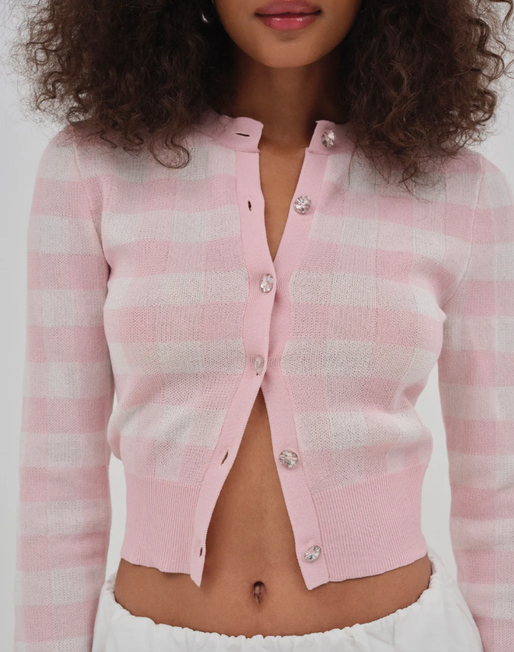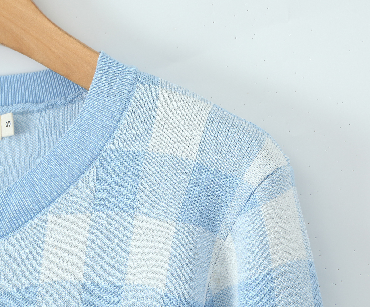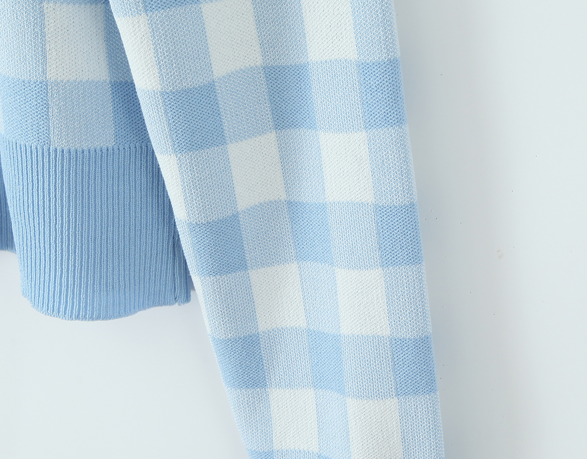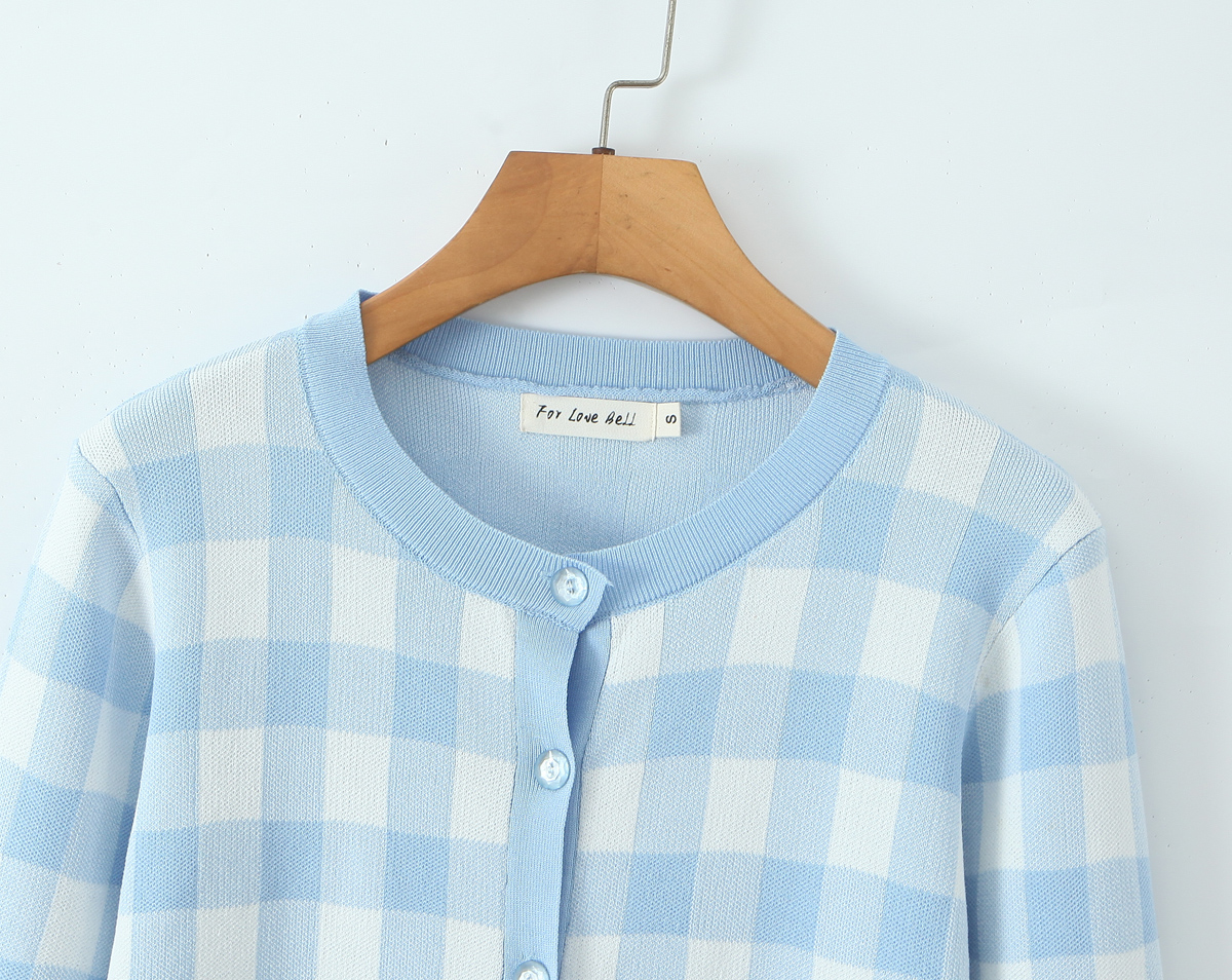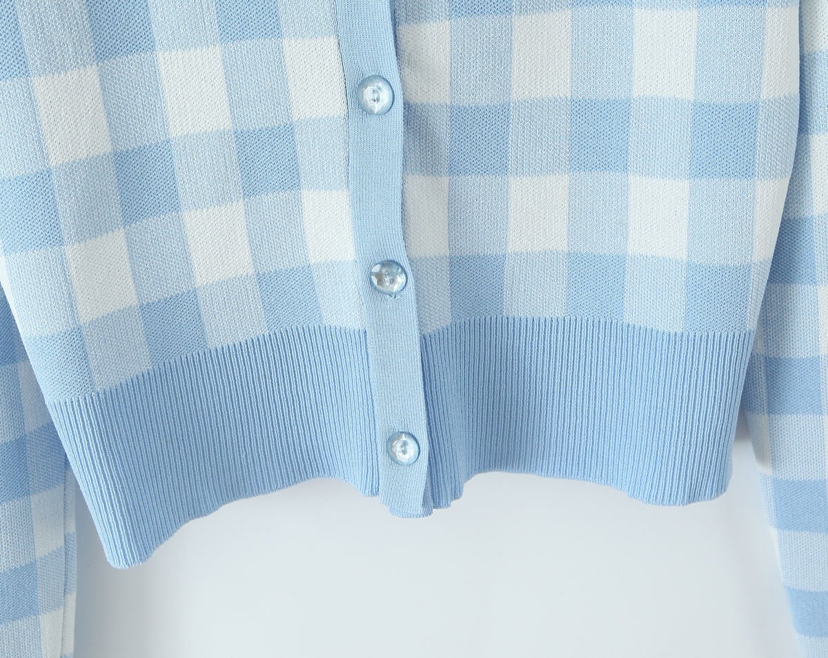 French Girlish Milk Fufu Fresh Plaid Short Knitted Cardigan Sweater Coat