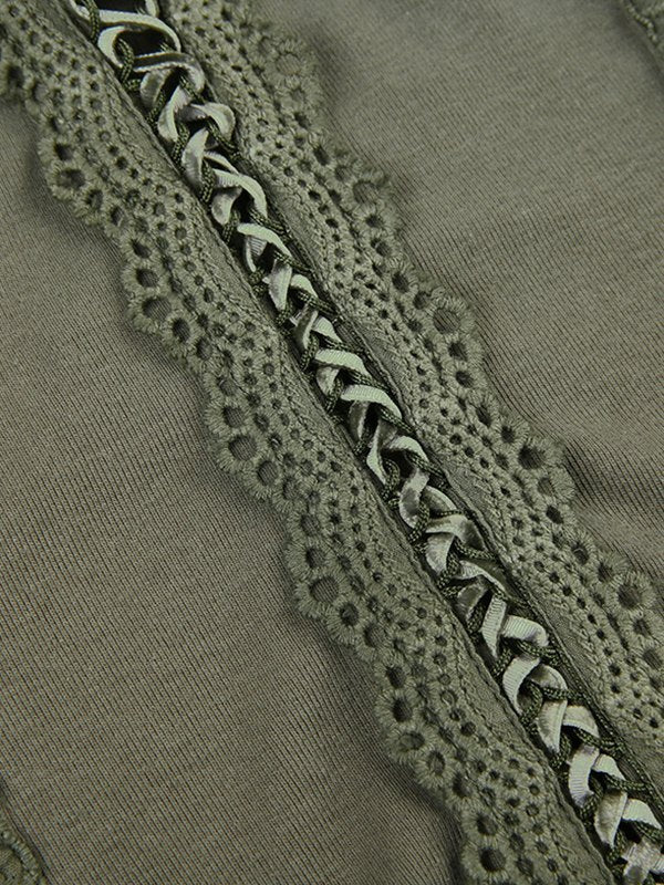 Green Fairy Grunge Short Sleeve Top with Lace Trim