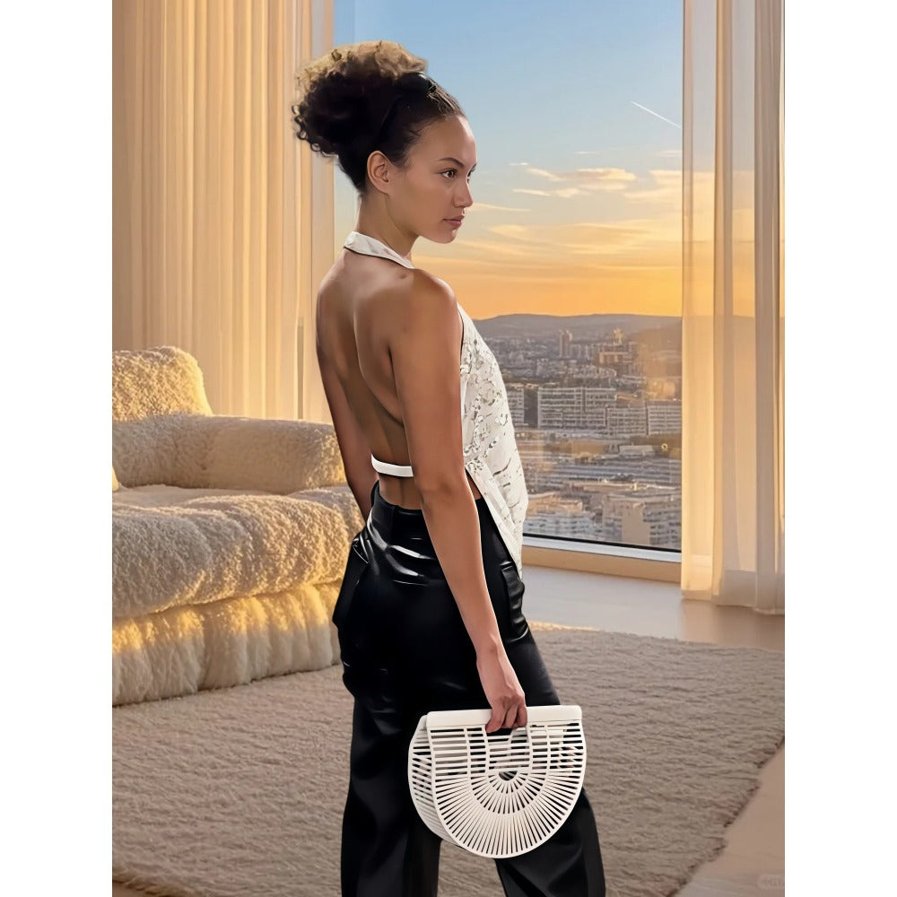 This light green halter top with floral sequin detail for women brings together a playful yet chic style. With its soft draped design and shimmering accents, it is a standout piece that works well for layering or wearing on its own.