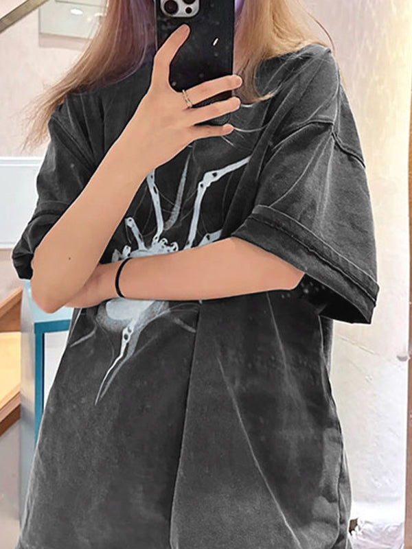 Hip Hop Oversized Spider Print Short Sleeve Tee