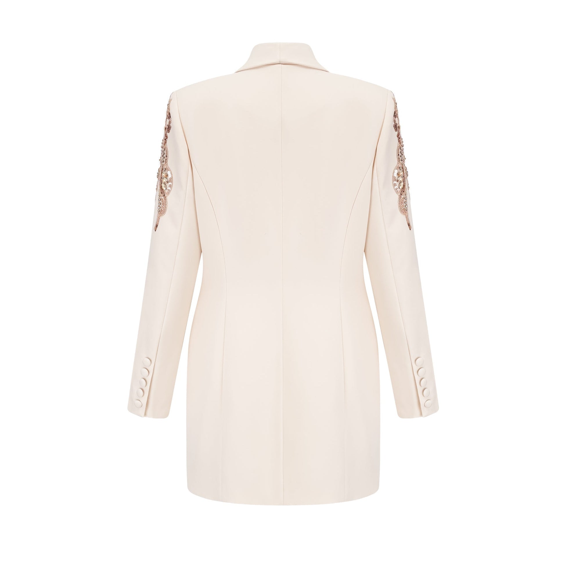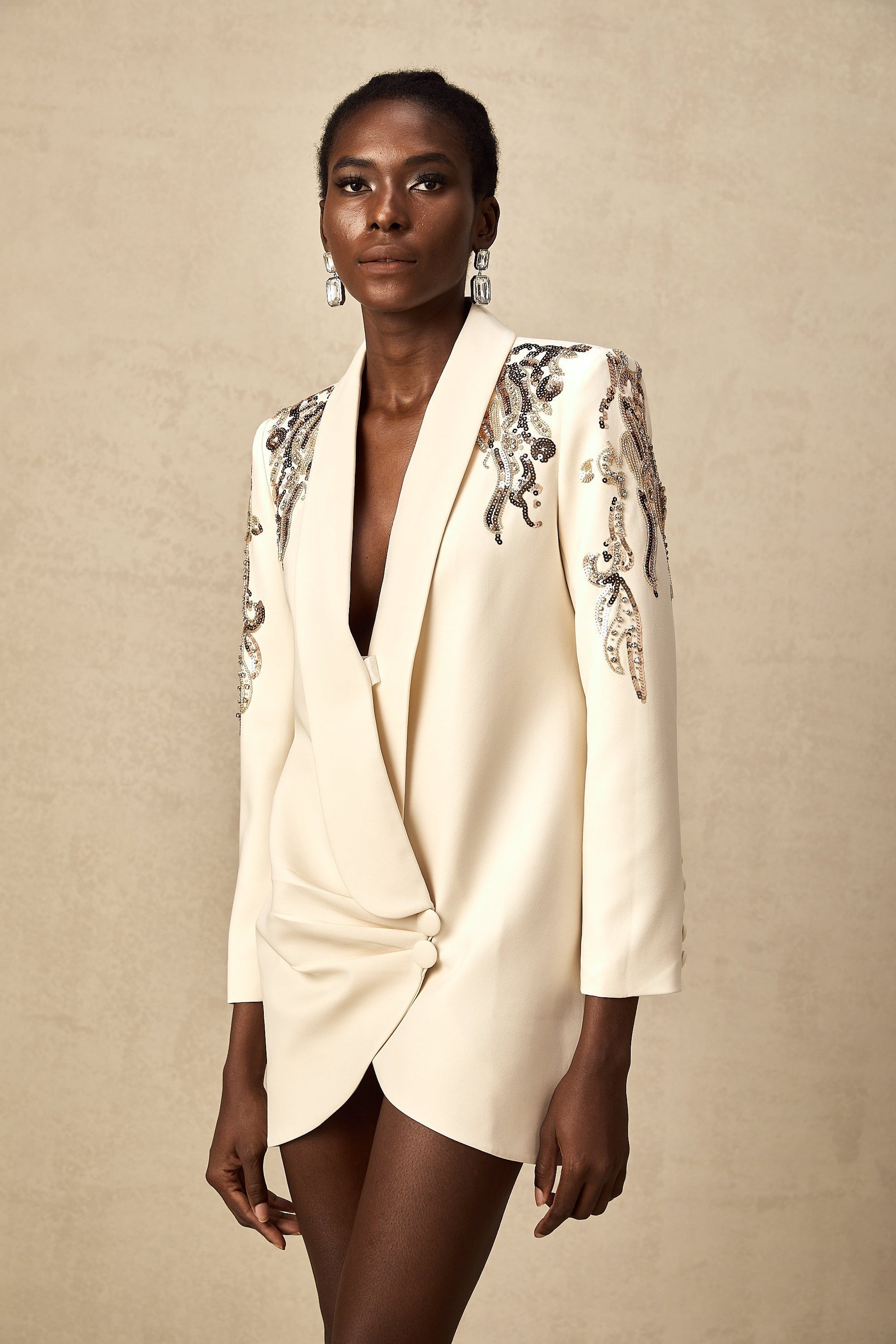 Ivory Embellished Blazer Mini Dress with Long Sleeves for Women - Teresa