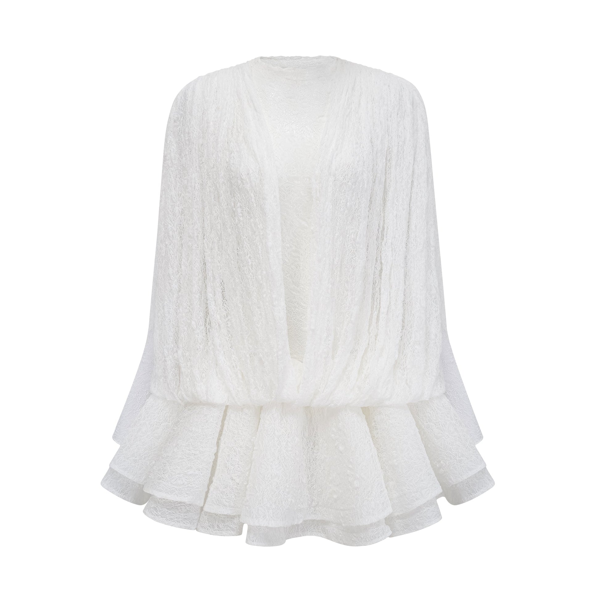 Ivory White Lace Mini Dress with Draped Detail for Women - Michela
