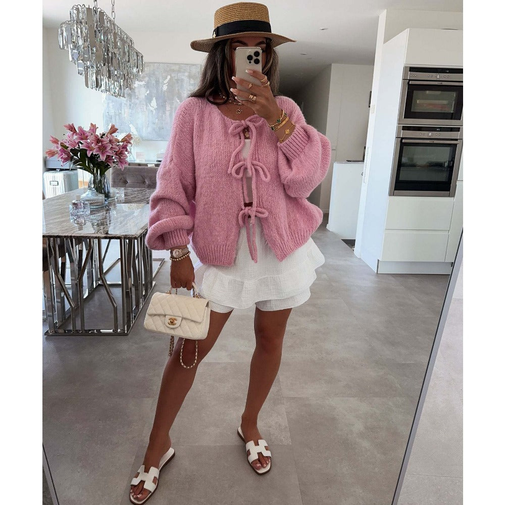 Knit Cardigan with Front Tie Closure for Women - Emma