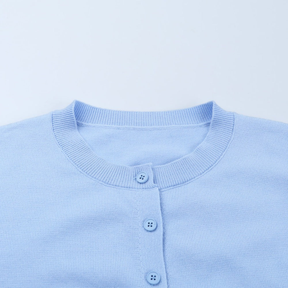 Light Blue Button Front Knit Cardigan for Women - Diletta