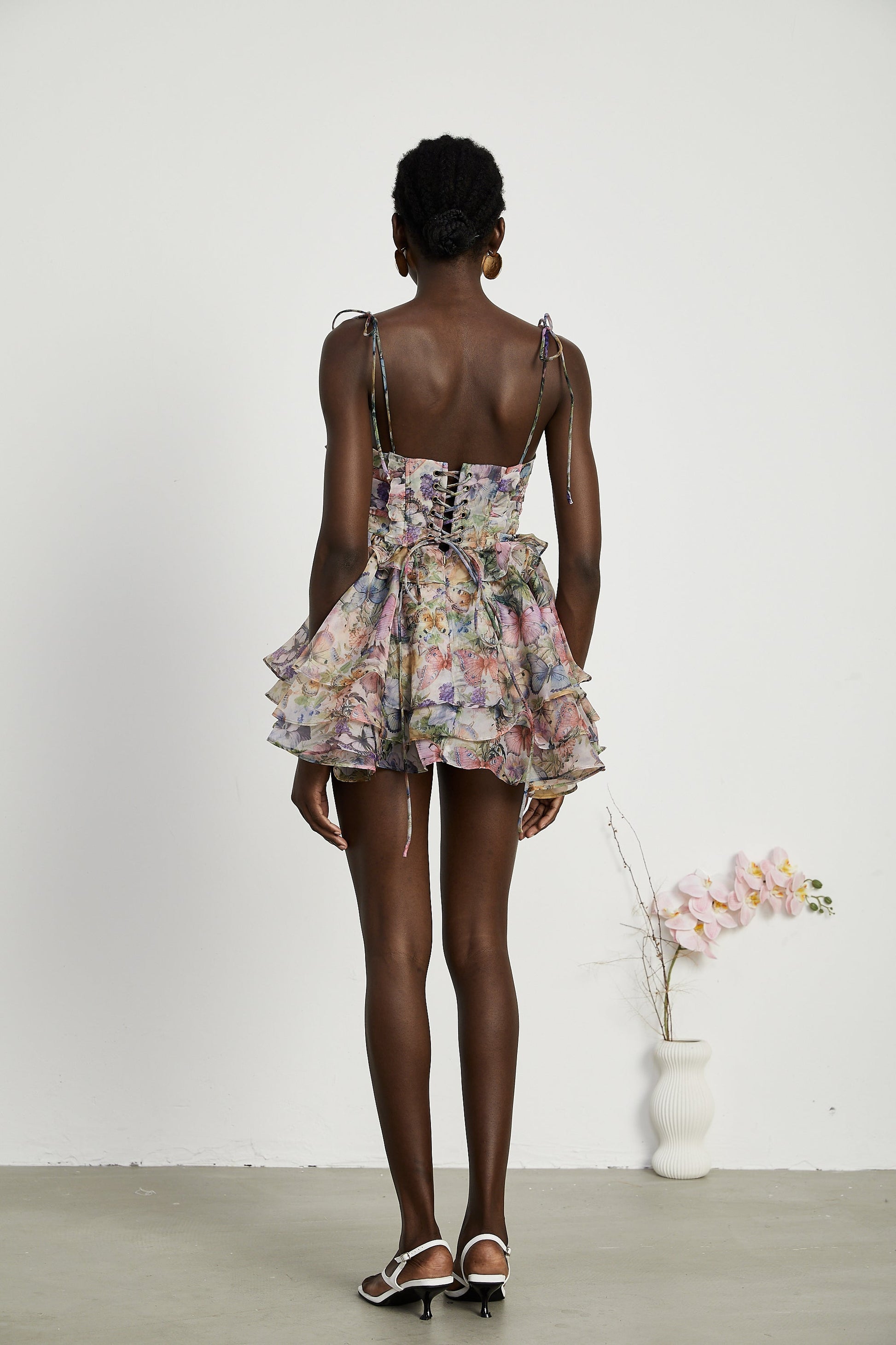 Multicolor Butterfly Print Mini Dress with Ruffle Hem for Women - Diletta
