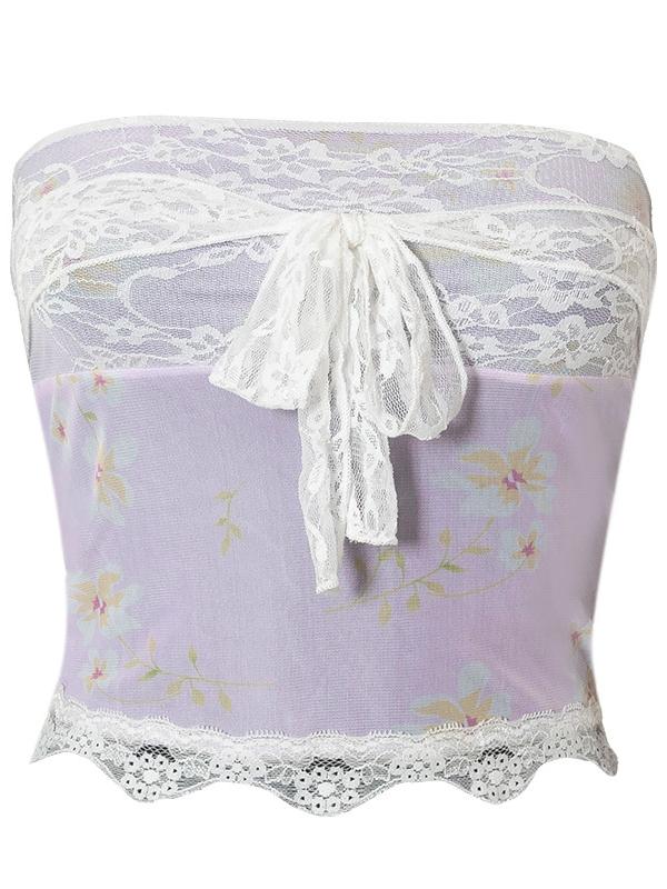 Description: Stand out from the crowd with these sexy tube tops. Crafted from mesh with lace fabric, it offers a fresh and elegant look. It features lace tie strap fastening, floral inspired print and has scalloped hem design.
