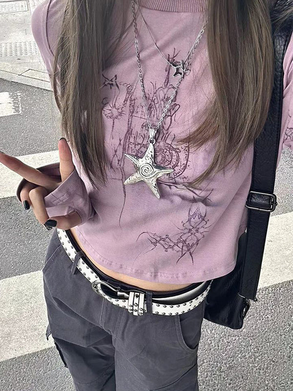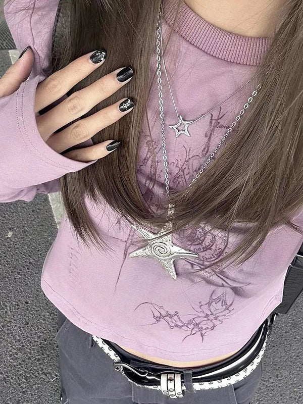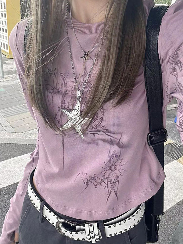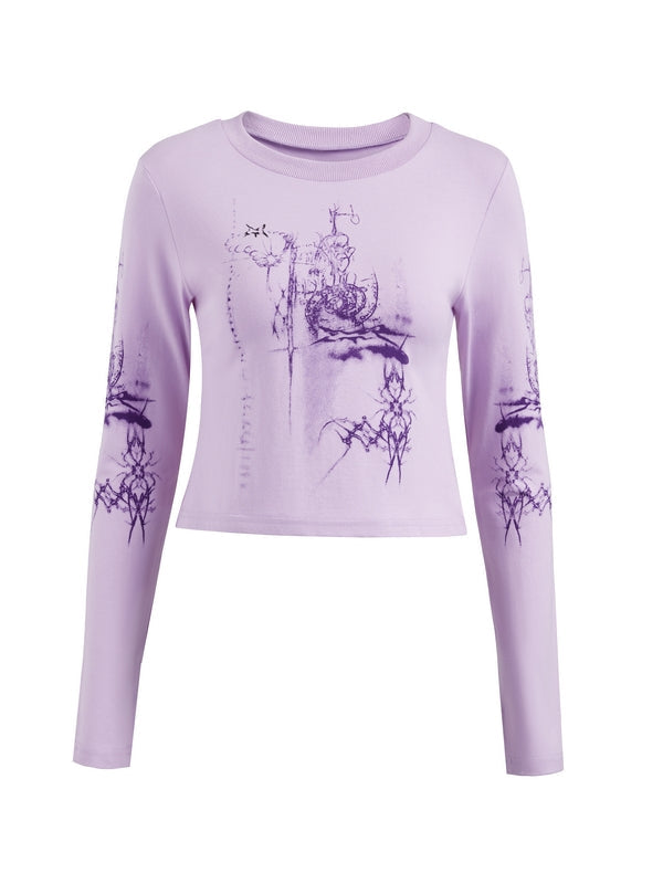 Purple Grunge Long Sleeve Tee with Graphic Print