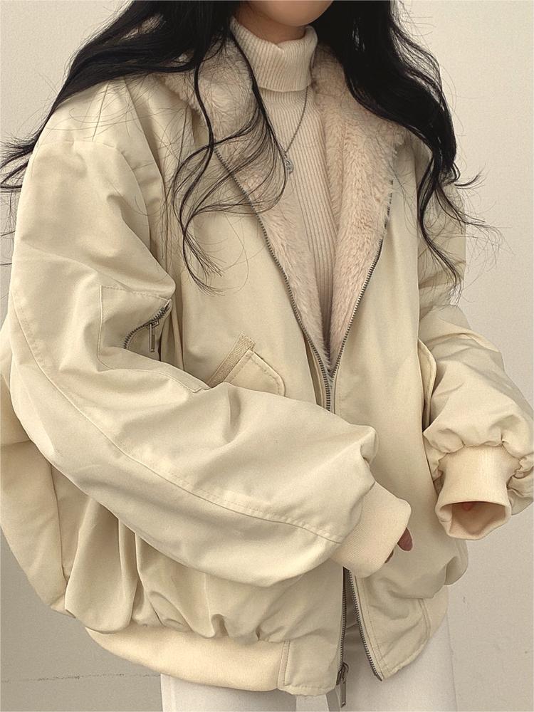 Description: This padded black fleece jacket can be worn on both sides to create two different looks. With a relaxed cut, it features front pockets, overcut long sleeves and a zipped design.
