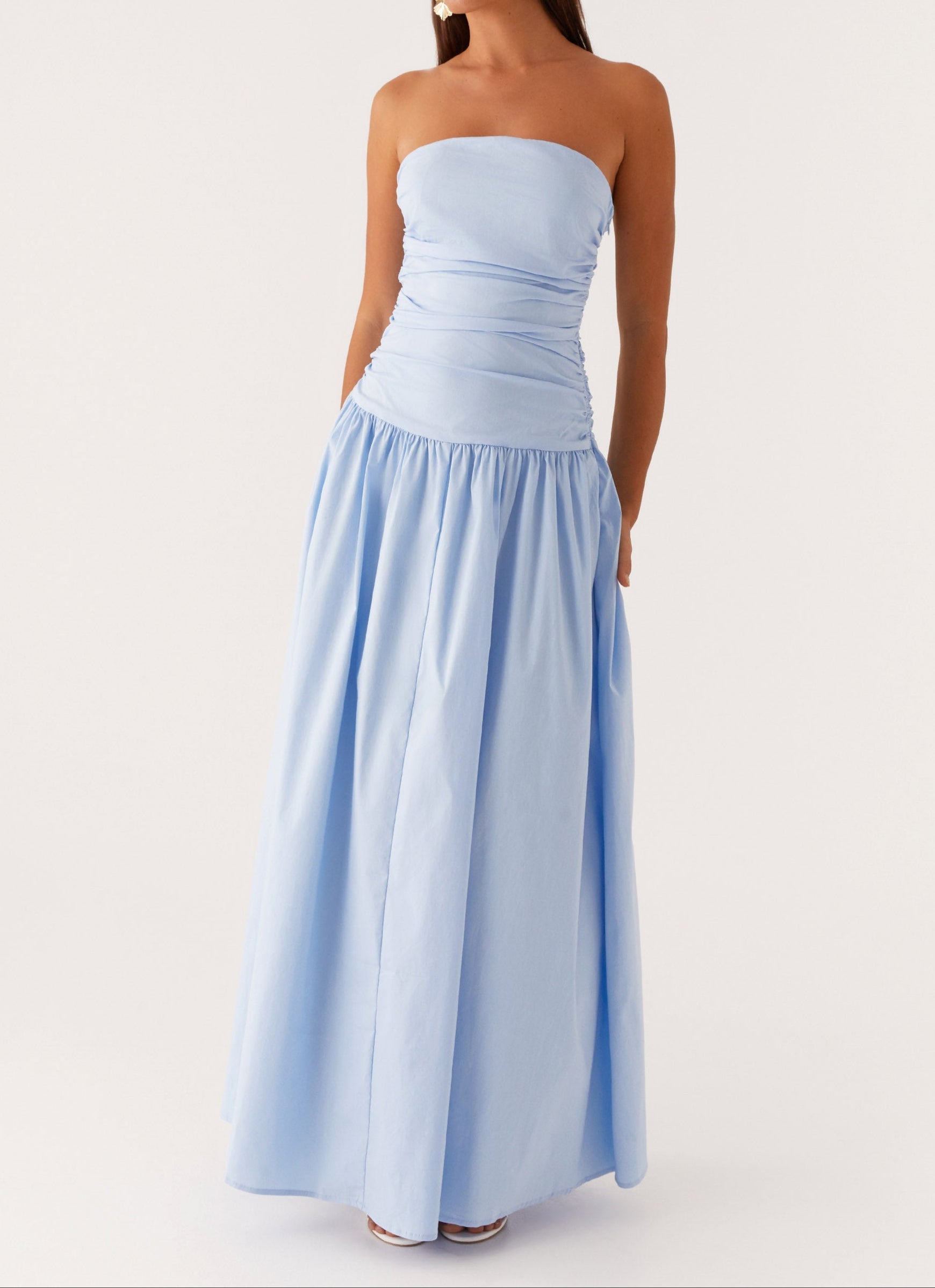 Radiate timeless elegance in the Ricciarda Maxi Dress, where graceful movement meets refined sophistication. The flattering ruched detailing and flowing flare skirt create a silhouette that's both romantic and effortlessly chic, perfect for enchanting summer evenings.