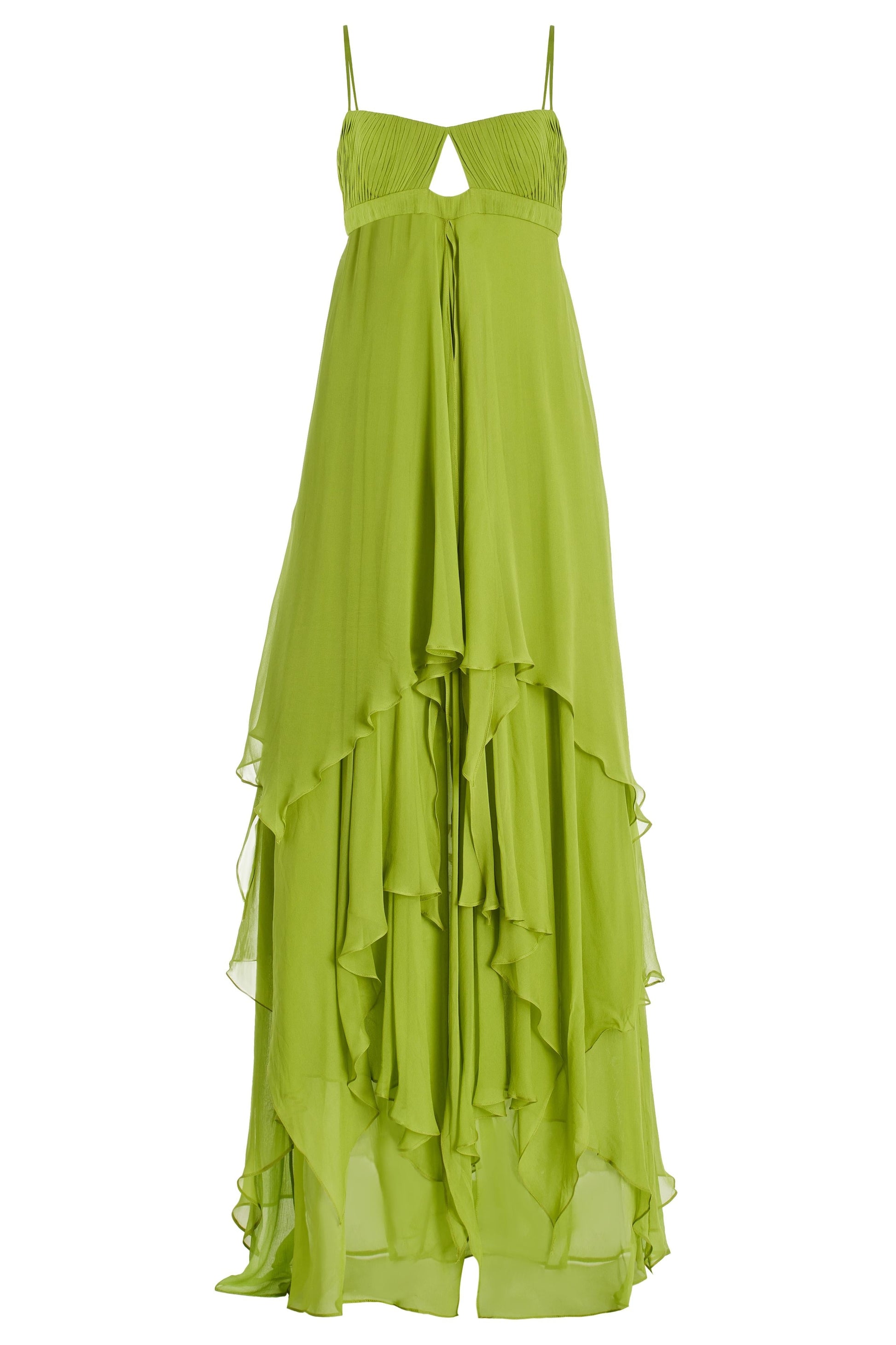 Make a standout impression with this flowy maxi dress designed for confident movement and effortless style. The layered ruffles, breezy cut-out detail, and soft pleated fabric come together in a lightweight design that’s ideal for warm days and stylish escapes.