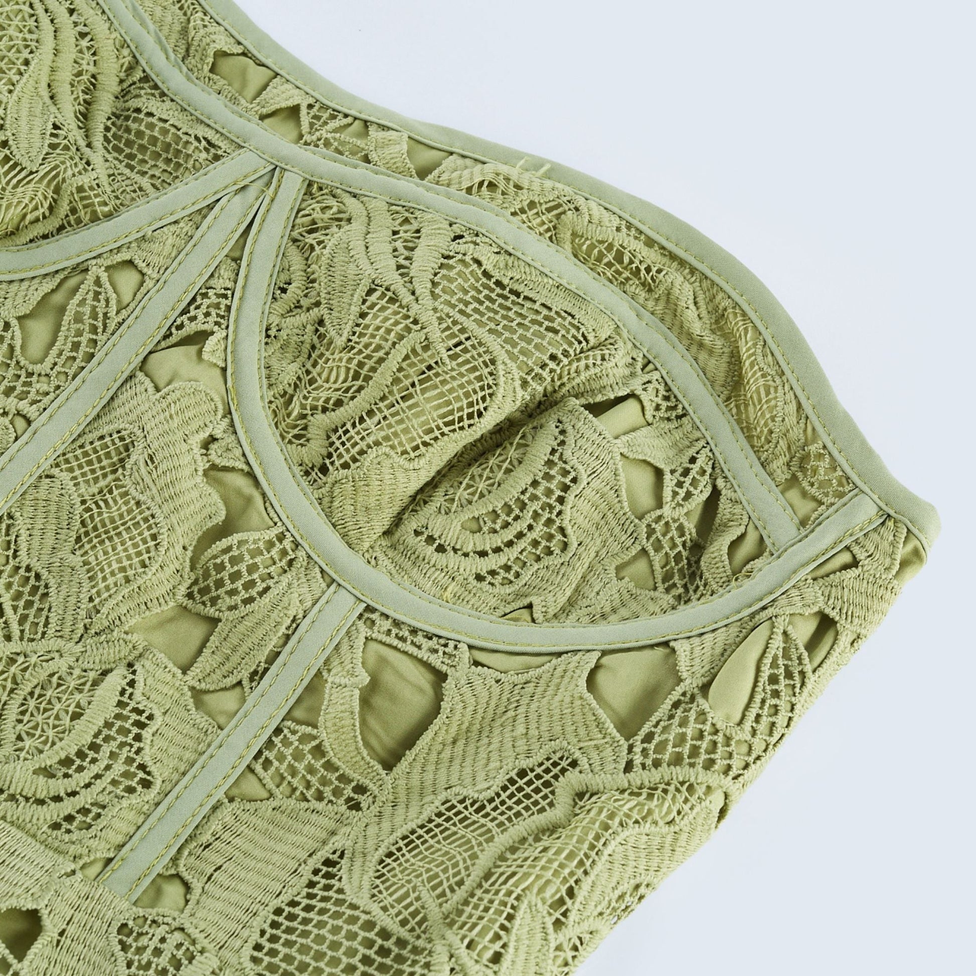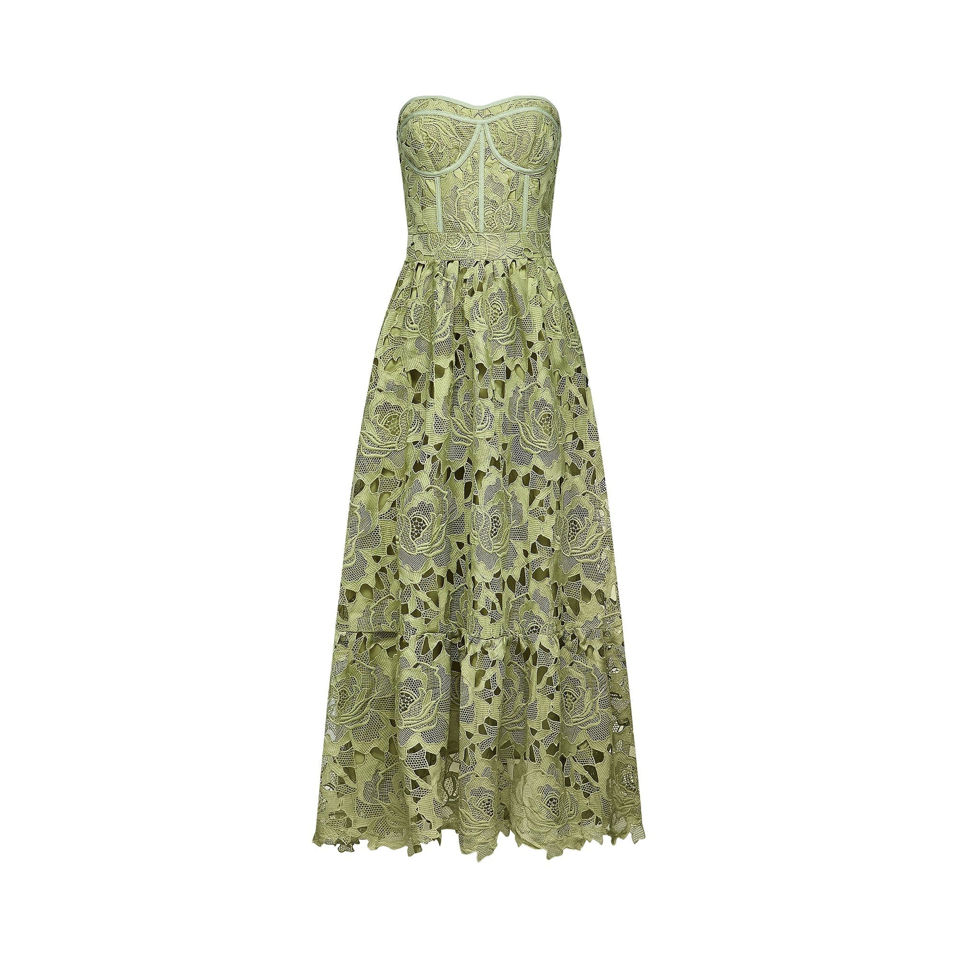 Sage Green Lace Strapless Maxi Dress with Flared Skirt for Women - Rosa
