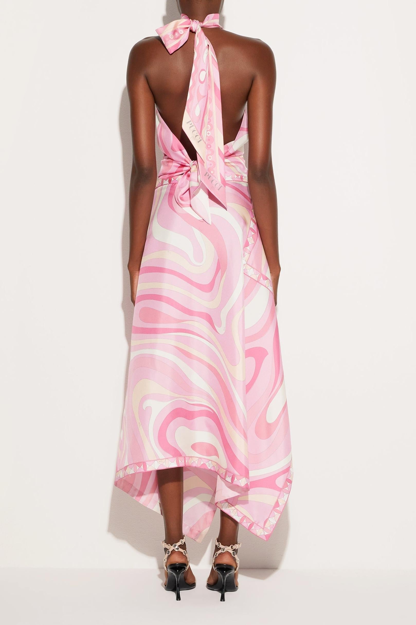 Halter neck sleeveless top pairs perfectly with the scarf print midi skirt