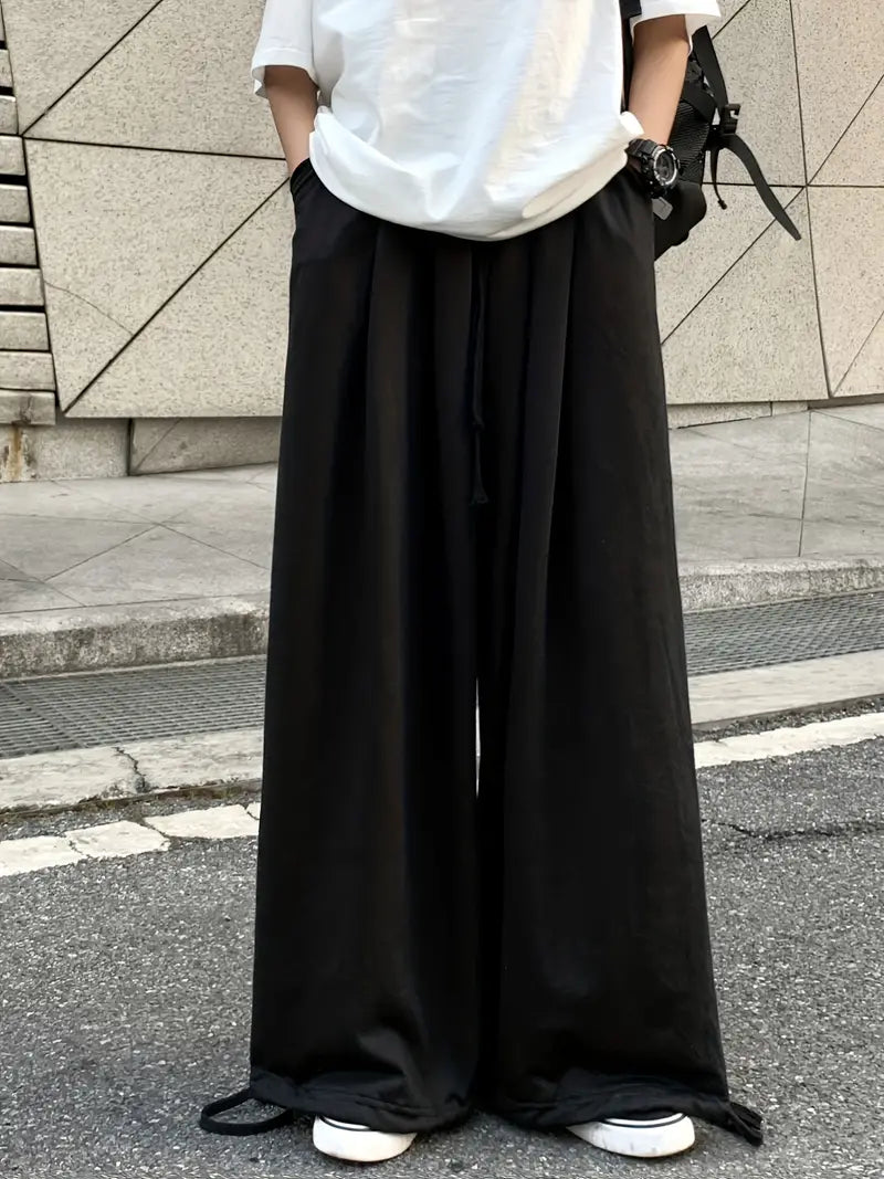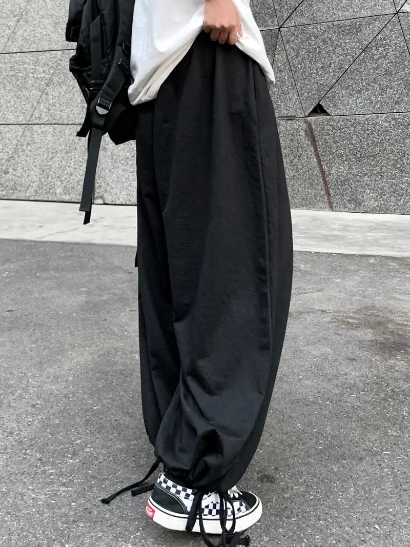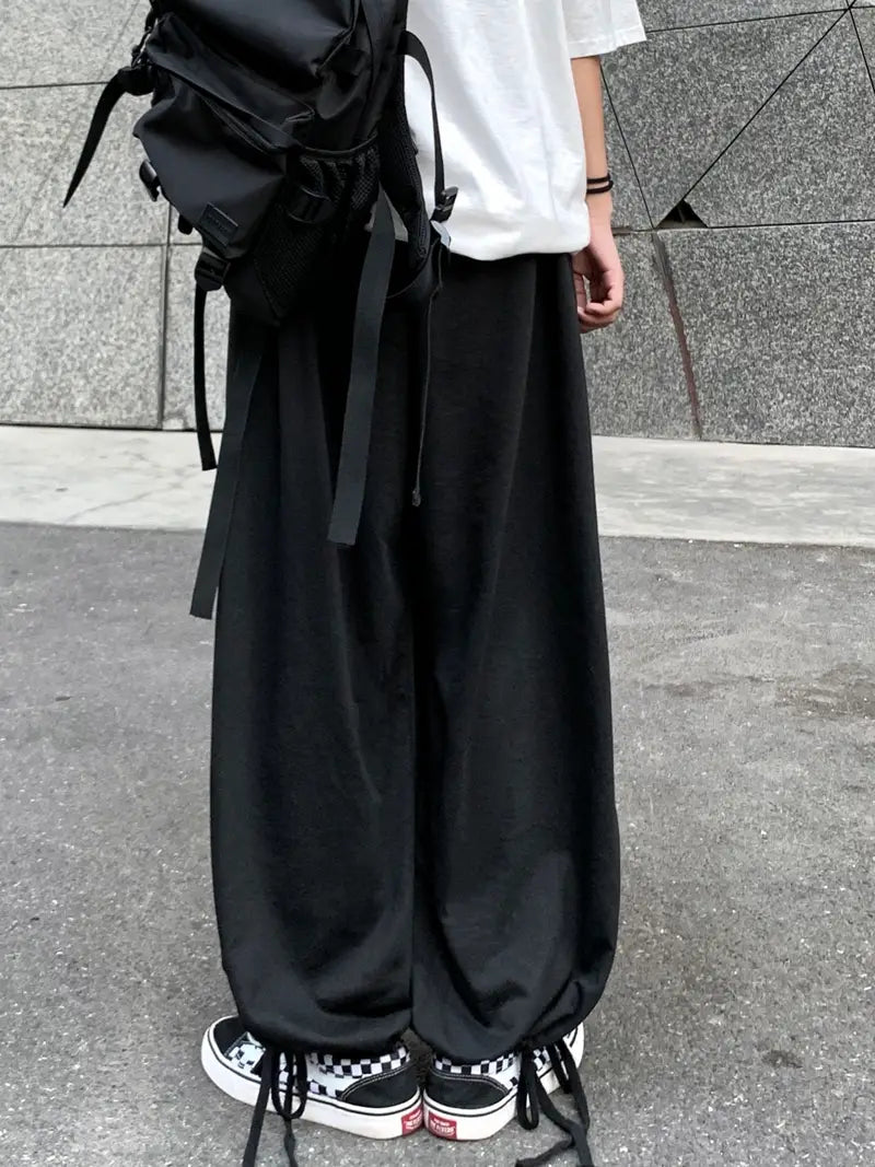 Solid Color Retro Sport Drawstring Baggy Sweatpants