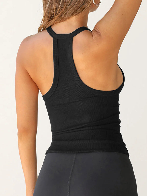 Solid Color Slim Knit Cami Top with V Neck