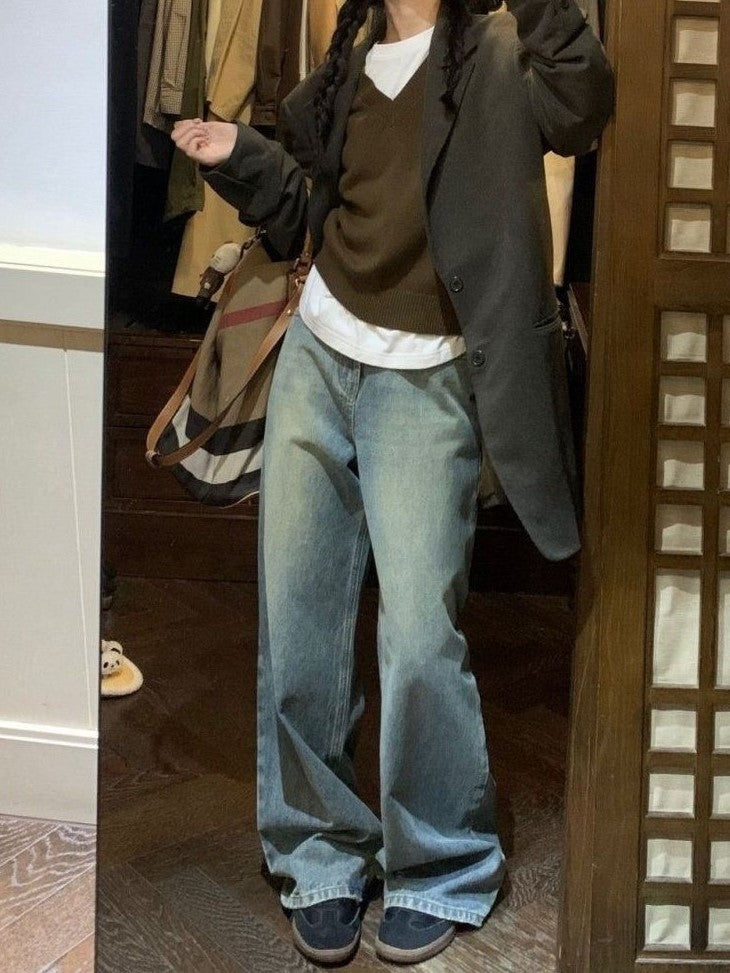 Authentic Washed Finish: These jeans feature a vintage-inspired washed finish that gives them a perfectly worn-in look. The subtle fading and natural distressing enhance their retro appeal, making them a staple piece in any wardrobe.