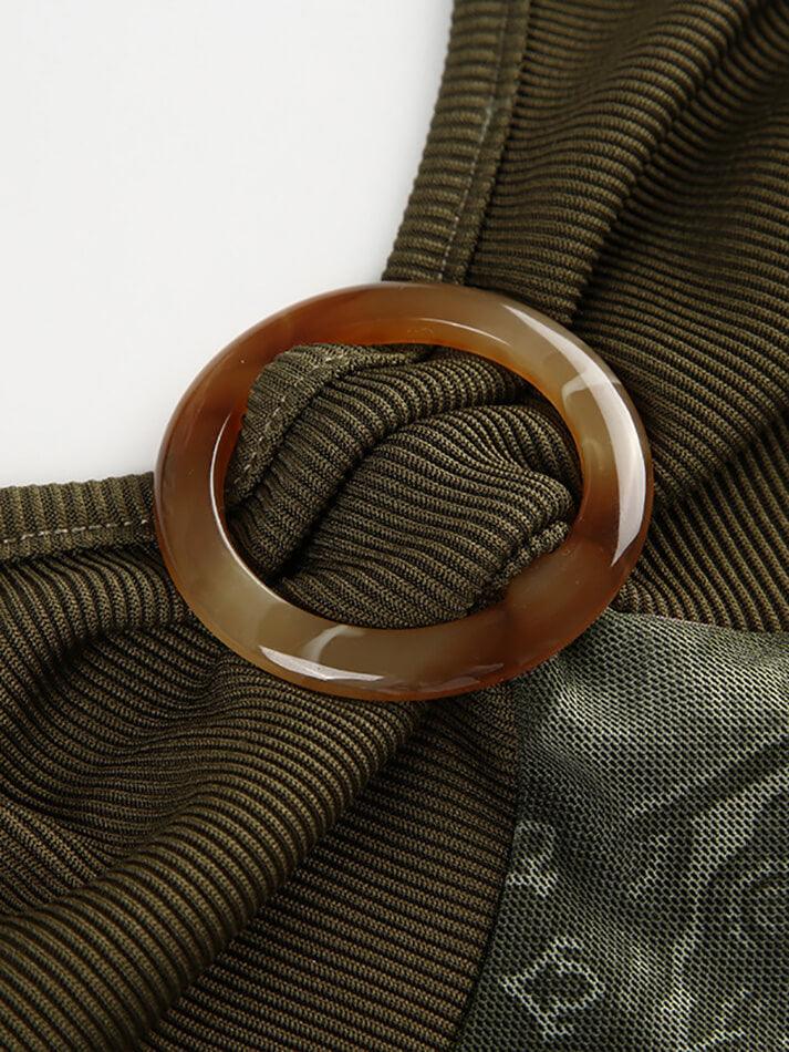 Vintage Halter Ruched Backless Patchwork Cami Top
