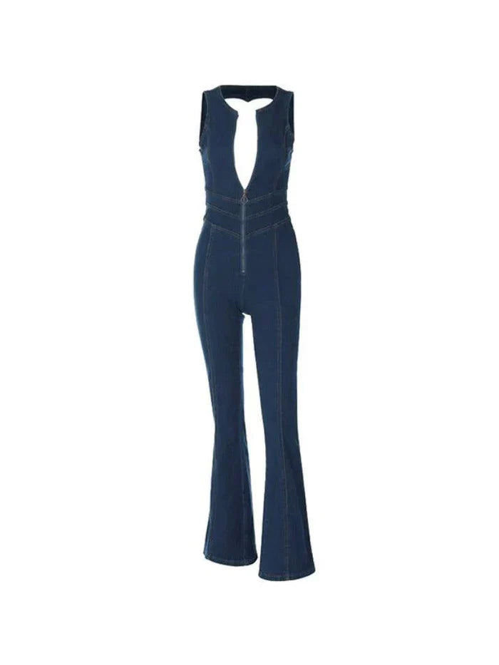 Vintage High Rise Denim Jumpsuit with Backless Zip Up