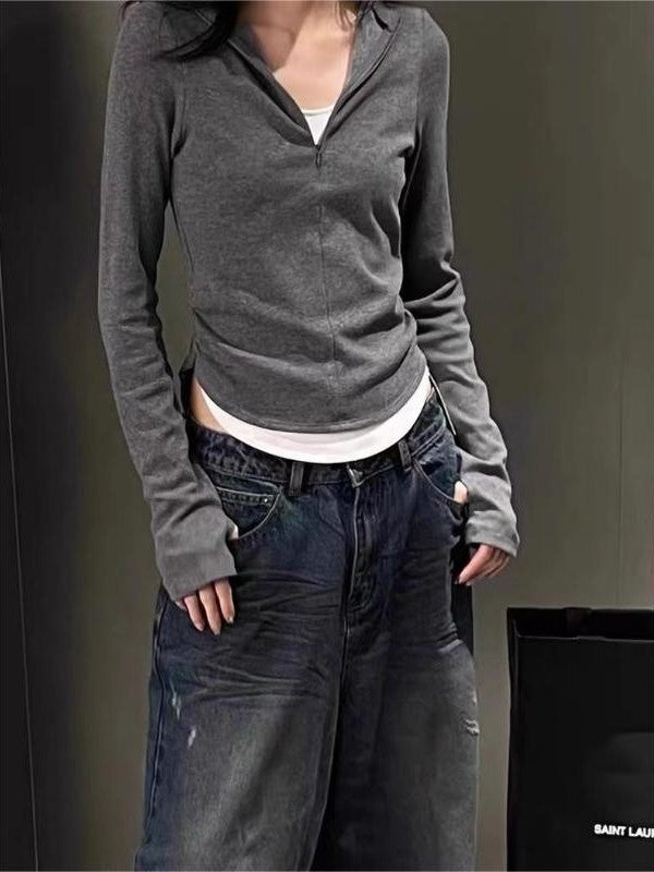 Clever Fake Two-Piece Design: This top features a smartly designed fake two-piece construction that gives the illusion of layering without the bulk. The layered look adds depth and dimension to your outfit, making it perfect for those who love a sophisticated, multi-layered appearance.