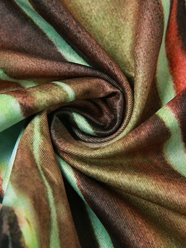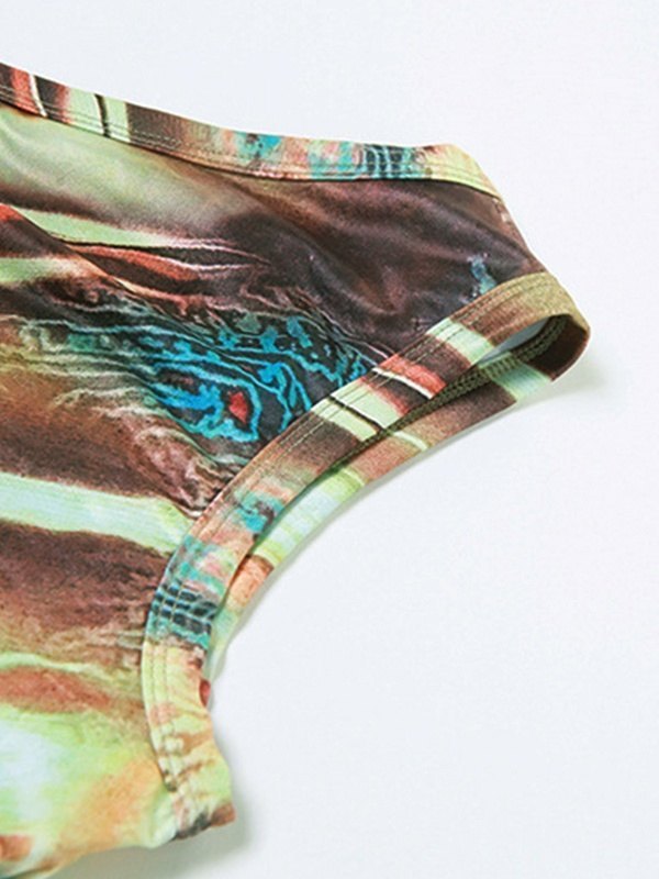 Unique asymmetrical pattern print design on the neckline for a trendy and eye-catching look.