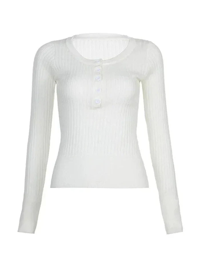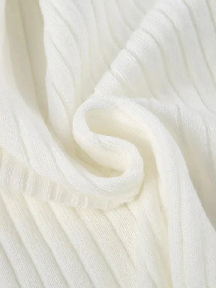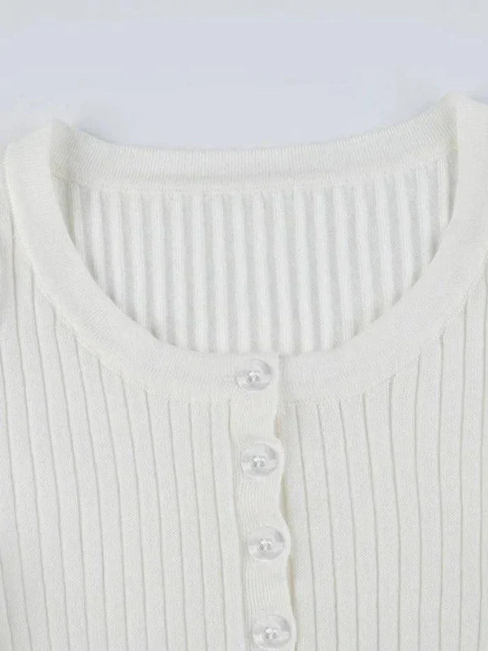 White Vintage Breasted Ribbed Long Sleeve Knit