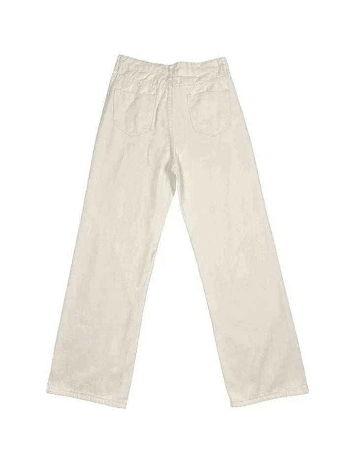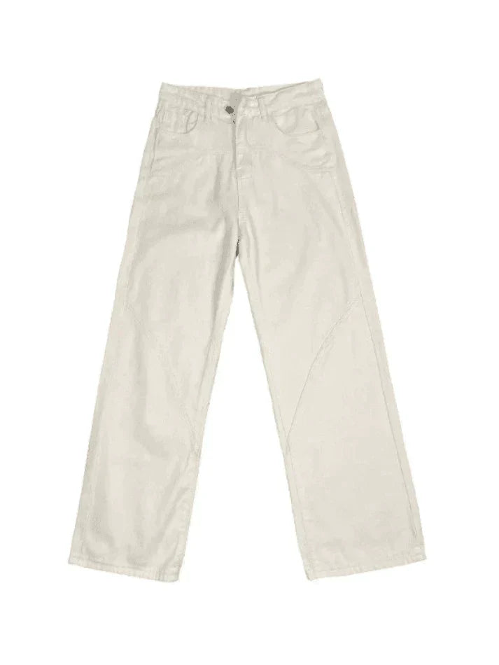 White Vintage Straight Leg Baggy Boyfriend Jeans with Splice