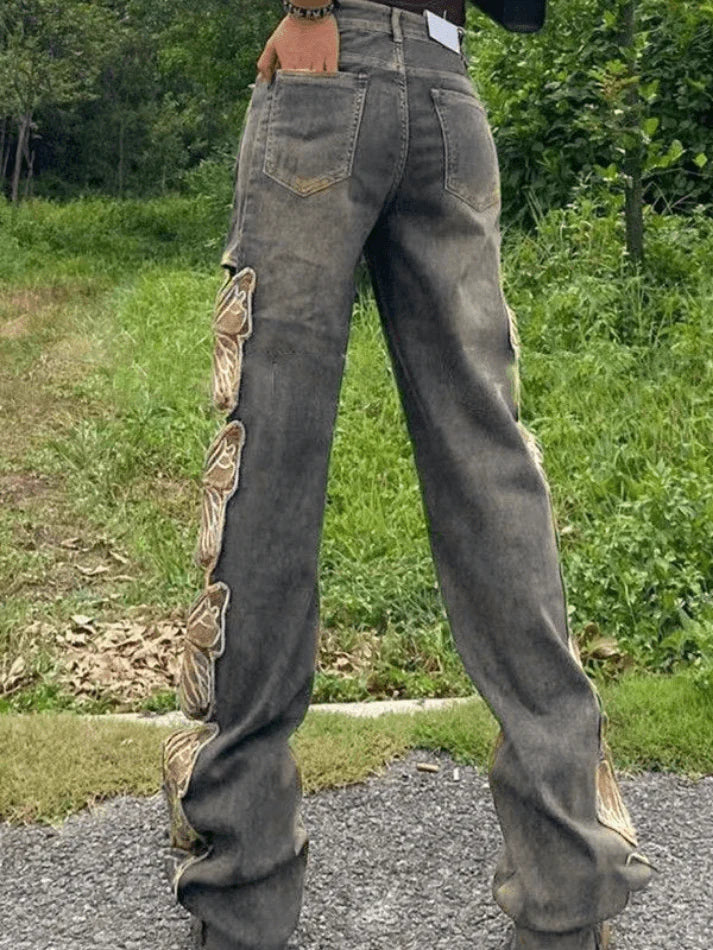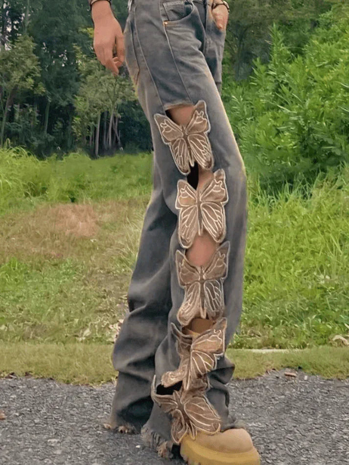 Y2K Butterfly Embroidered Ripped Baggy Ripped Jeans