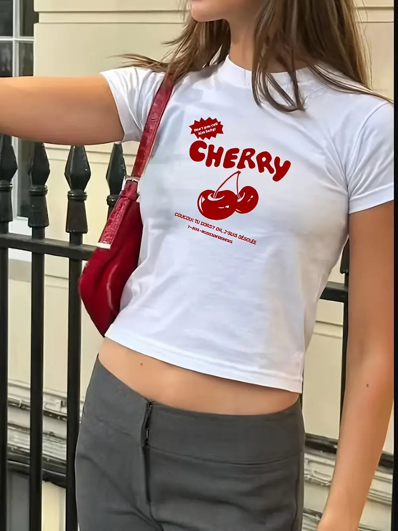 Y2K Graphic & Letter Print Short Sleeve Crop Top