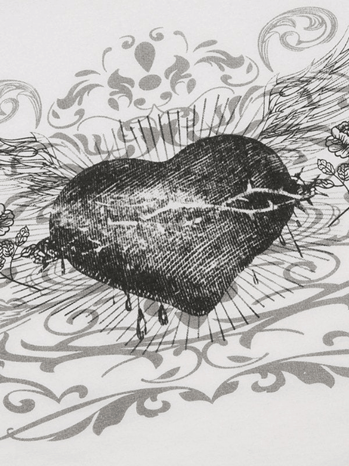 Y2k Heart Print Slim Fit Short Sleeve Tee
