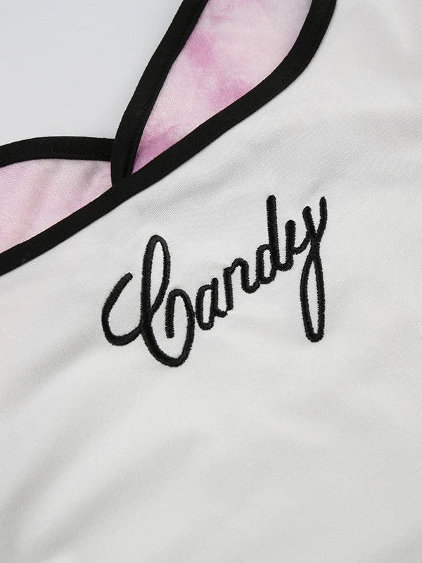Y2K Monogrammed Embroidered Fake Two Piece Cami Top
