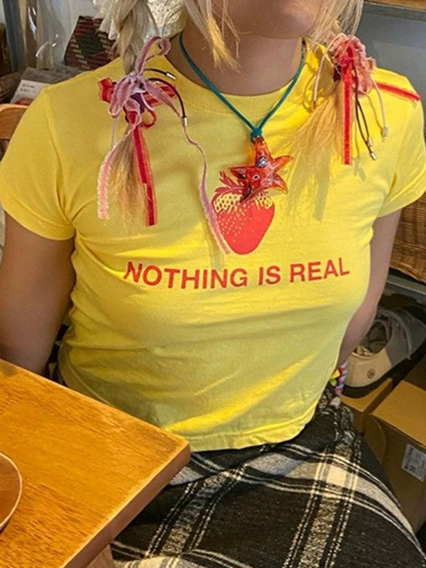 Yellow Y2K Strawberry Letter Print Crop Short Sleeve Tee